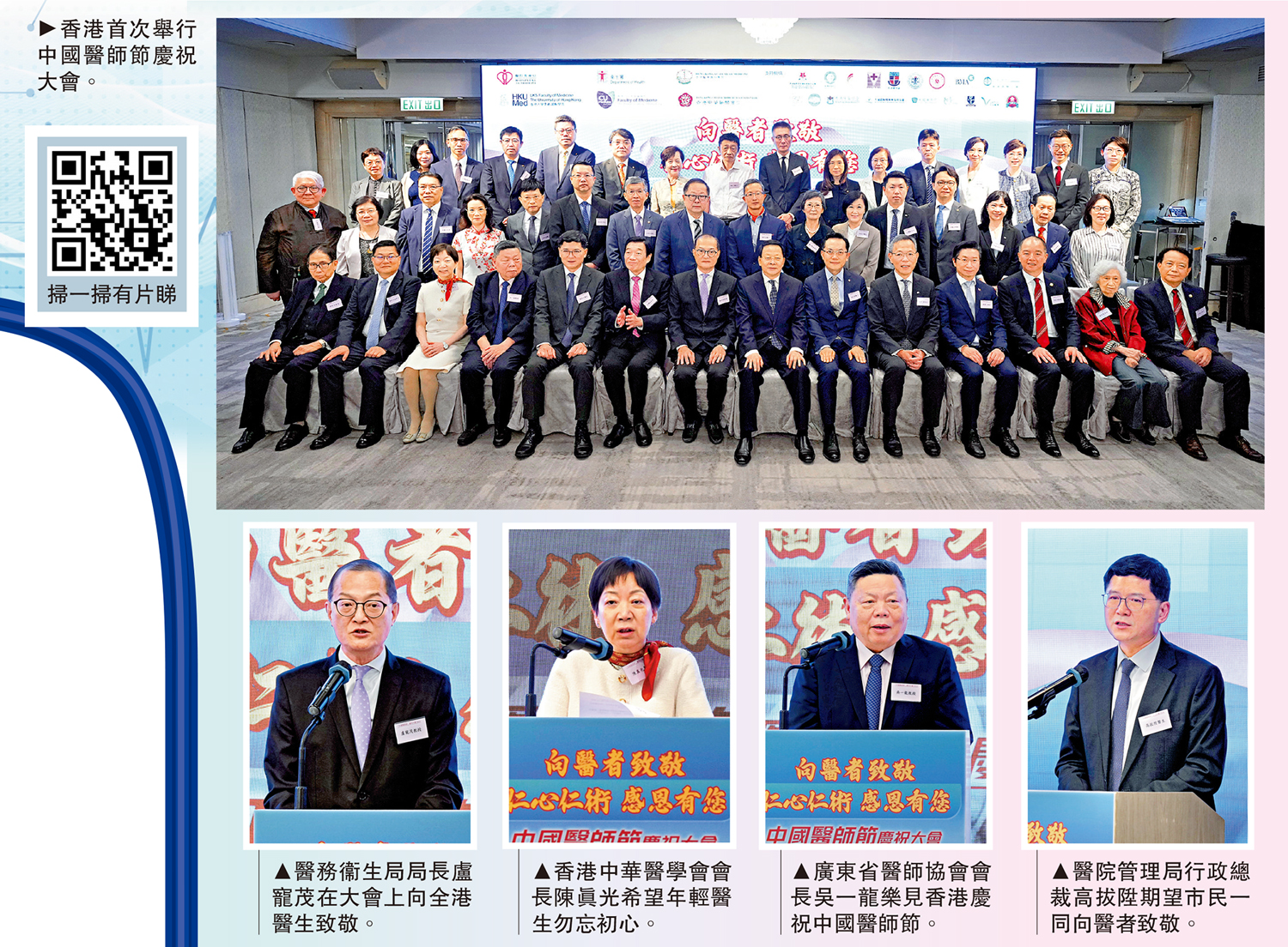 香港中華醫學會會長陳真光表示,去年出席了廣東省醫師協會舉辦的中國醫師節慶祝大會,感受到國家設立節日的良苦用心,認為對醫生貢獻的讚揚引起共鳴。她亦表示,沙士及新冠疫情期間見證香港公立醫院醫生的專業工作態度,希望香港年輕醫生可以傳承敬佑生命、救死扶傷、甘於奉獻及大愛無疆的崇高精神,無忘初心。