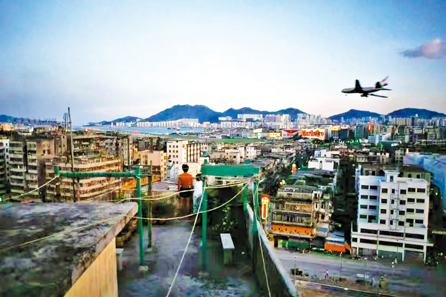 樓宇上有天台,這裏有藍天陽光和新鮮空氣,有盆栽的植物,大人在此休息,孩子們寫作業嬉戲。站在天台,可見啟德機場的飛機經過。城寨距機場最近距離只有五十米,被戲稱「拿根竹竿就能把飛機打下來」,飛機上的乘客可以清晰地看到城寨居民晾曬的衣服顏色。