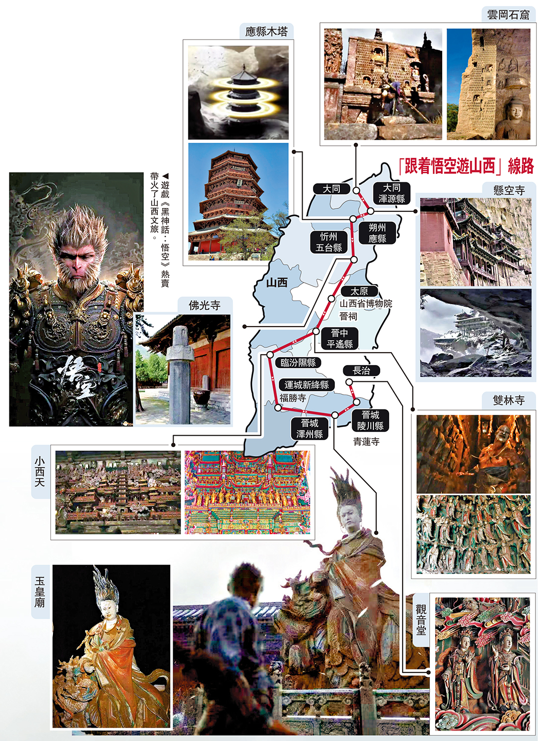 8月20日,國產單機遊戲巨作《黑神話:悟空》在全球同步解鎖,截至當晚8點,上線10個小時,《黑神話:悟空》在全網總銷量已經超過450萬份,銷售額超15億。遊戲中有大量山西古建築、塑像和壁畫等元素,據不完全統計,該遊戲畫面在國內有36個取景地,其中27個來自山西,絕大部分都是主創人員實景掃描而來。數據顯示,遊戲上線當天,山西旅遊熱度環比上月翻倍,其中玉皇廟、崇福寺、小西天、雙林寺等遊戲取景地熱度更是紛紛飆升,北京、浙江、河南、陝西、上海等地網友「跟着悟空遊山西」的意願最為強烈。攜程旅行數據顯示,8月20日0點至12點,山西省搜索熱度環比前一日增長超過10%,大同、朔州等城市搜索熱度均環比增長2成。\大公報記者 楊奇霖