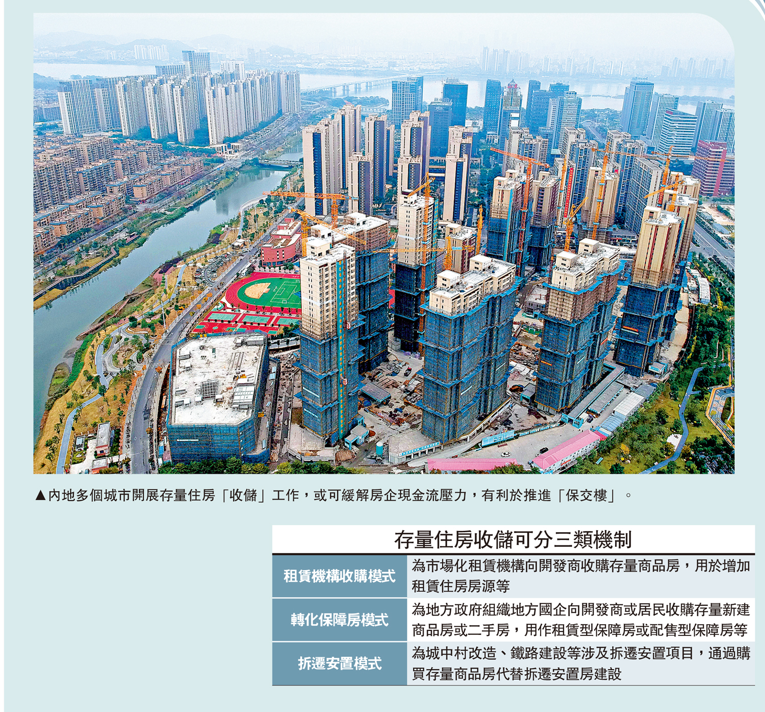 「租賃機構收購模式」為市場化租賃機構向開發商收購存量商品房,用於增加租賃住房房源等;「轉化保障房模式」為地方政府組織地方國企向開發商或居民收購存量新建商品房或二手房,用作租賃型保障房或配售型保障房等;「拆遷安置模式」則為城中村改造、鐵路建設等涉及拆遷安置項目,通過購買存量商品房代替拆遷安置房建設。
