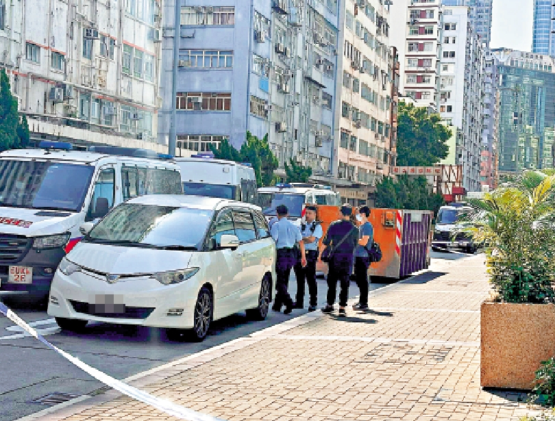 事發昨日上午8時26分,警方接報大角咀櫸樹街37號對開,有十多名形跡可疑的黑衣男子手持鐵筆圖謀不軌。