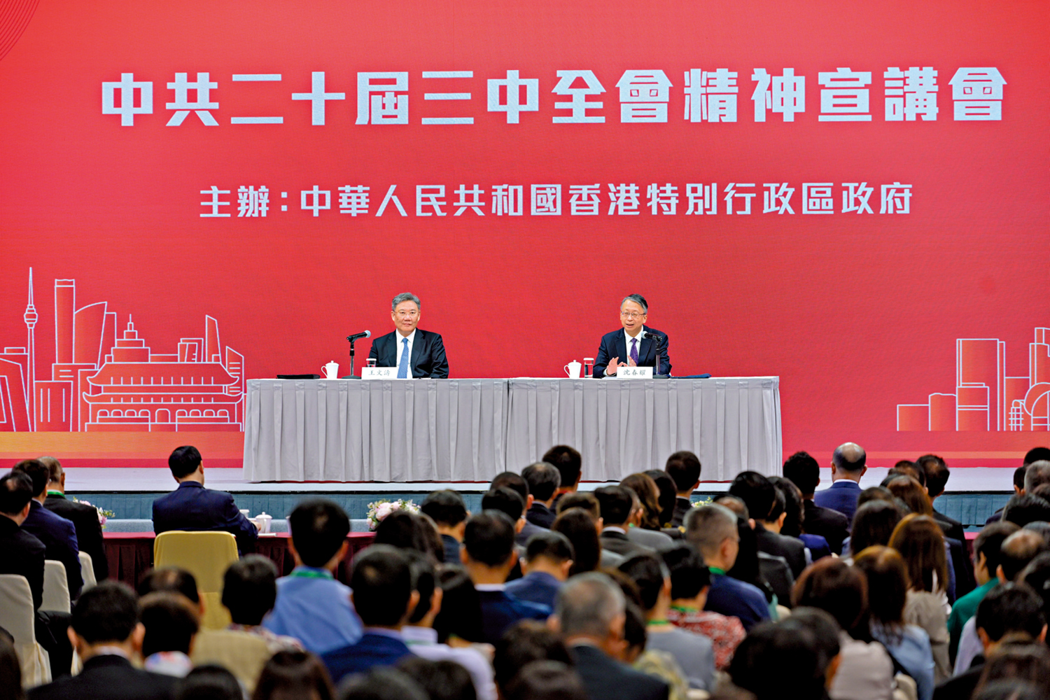 由香港特區政府主辦的中共二十屆三中全會精神宣講會昨日下午在香港會展中心舉行。多位港區代表委員表示,三中全會的決策部署為香港未來發展提供了明確方向,強調香港應該積極貫徹落實全會精神,深化改革,提升管治效能,更好地扮演「超級聯繫人」和「超級增值人」角色,融入國家發展大局。
