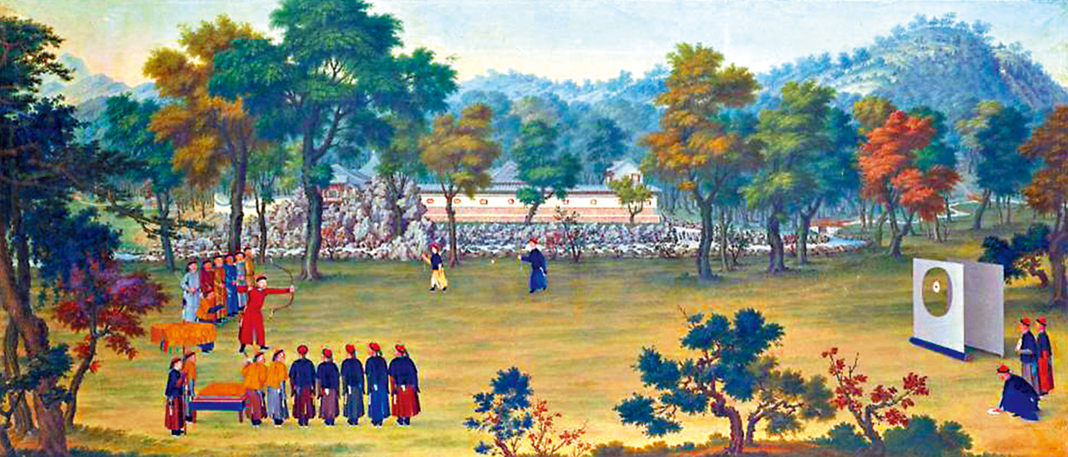 中國國家隊運動員在今屆巴黎奧運表現優秀,內地奧運健兒代表團昨日起展開一連三日訪港活動,全城掀起熱潮。上周本欄提到體育運動自古就有,明、清兩朝宮中畫院也留下不少「帝王行樂圖」,反映帝王宮中的娛樂活動、精神生活或節慶餘興。本期為讀者介紹清宮繪畫《乾隆射箭圖》。