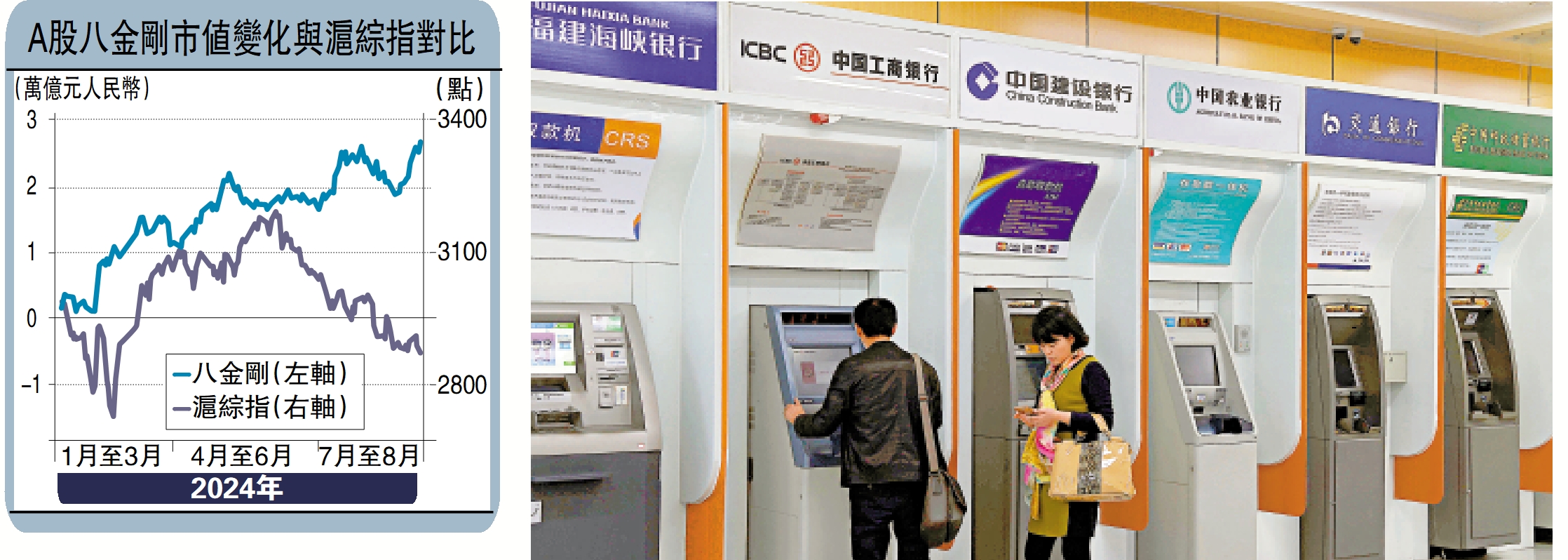 截至昨日,A股八金剛之中,五隻年內累計漲幅均在三成以上,分別是中國神華(601088)升39.39%、工商銀行(601398)升33.67%、農業銀行(601288)升32.59%、中國石油(601857)升30.75%、長江電力(600900)升30.46%,至於其餘三隻的表現也相當優異,分別是中國銀行(601988)升27.61%、中國石化(600028)升26.58%、建設銀行(601939)升23.24%。相比之下,同期滬綜指累跌4.46%,中證500指數下挫14.55%。