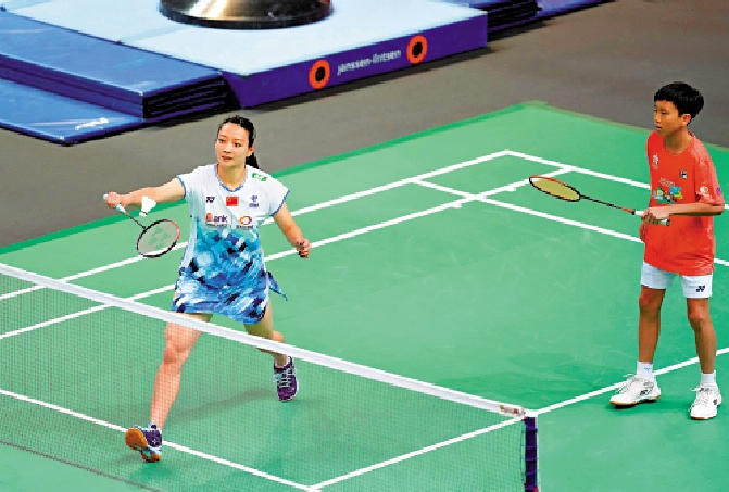 至於兩名港隊青年隊員則有幸與國家隊混雙金牌組合鄭思維和黃雅瓊對賽,還有兩名幸運的現場觀眾能親自與「雅思組合」切磋。兩位小朋友與偶像合作打波,表現毫不怯場,打得有板有眼,其中與鄭思維合作的小朋友,直接向黃雅瓊扣殺搶攻,這球難不到國家隊金牌選手之下,最終鄭思維還是技高一籌,一記對角扣殺得分。