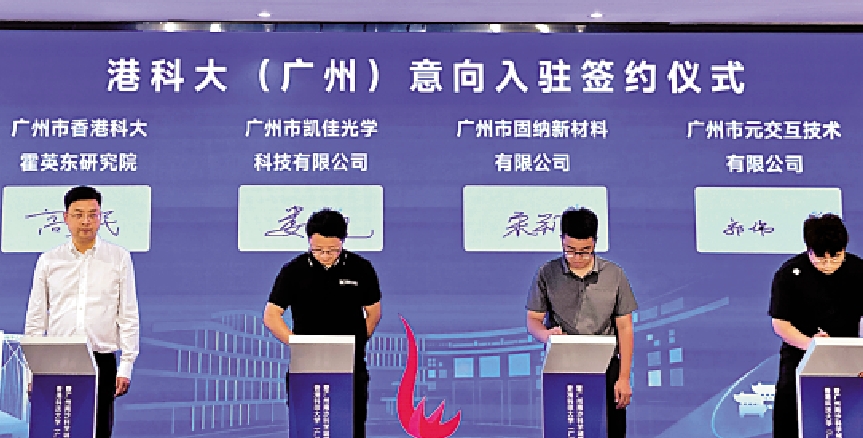 活動上,還舉行了港科大(廣州)科創企業簽約儀式。據了解,目前香港科技大學(廣州)科創成果轉移轉化基地已儲備20個初創項目,當中絕大部分由港科大或港科廣科研團隊創立。廣州派得新能源聯合創始人趙德澍表示,基地將在辦公場地、實驗室、資質辦理審核、行業資源對接等方面提供支持。廣州智微新材科技有限公司聯合創始人安金亮則期待基地在人才培養、資金和市場拓展等方面提供幫助。