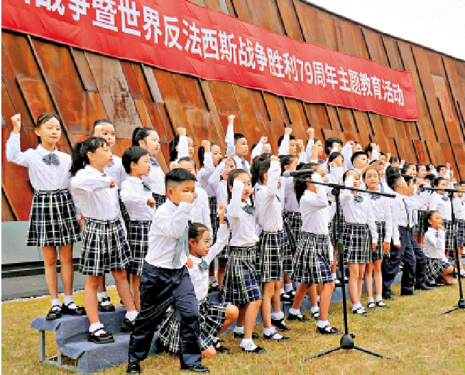 當天,侵華日軍南京大屠殺遇難同胞紀念館勝利廣場上空響起勝利號角,紀念抗戰勝利並緬懷死難同胞。南京市青少年學生代表、南京大屠殺倖存者後代代表、部隊代表等約150人參加活動。南京大屠殺歷史記憶傳承人、南京大屠殺倖存者曹洪泰和張翠英的女兒曹玉莉來到活動現場,和年輕一代共同紀念抗戰勝利。「我們期盼世界和平,更期盼我們祖國越來越好。」曹玉莉說,「我們在歷史傳承的基礎上,更要教育我們的後代不忘歷史、強我中華。」
