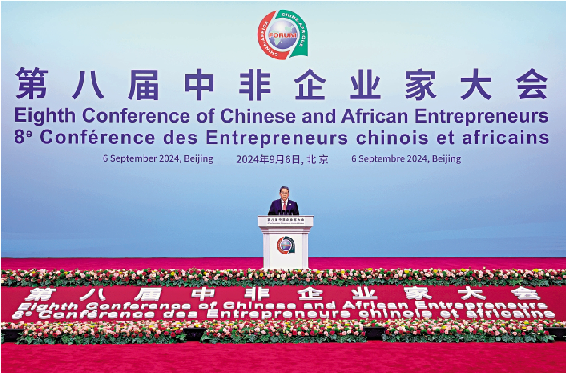 9月6日上午,國務院總理李強在國家會議中心出席第八屆中非企業家大會開幕式並致辭。李強指出,中非經貿合作是中非合作的重要基石,近年來取得豐碩成果,為中非攜手推進現代化提供了有力支撐。中非要更加緊密團結協作,推動經貿合作向更深層次、向更高水平發展,進一步加強市場對接、推動產業融合、強化創新驅動。中國將擴大對最不發達國家單邊開放,拓展非洲農產品輸華「綠色通道」。中國願同非洲不斷深化產業鏈合作,更好實現產業互促、利益共享、發展共進,更深度融入全球產業鏈供應鏈,共同維護產供鏈穩定暢通。
