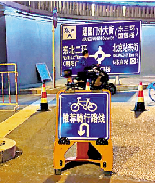 在復興門內大街上,王女士與女兒正進行着騎行後的短暫休整,她們剛剛從長安街騎行而來。「我們在北京轉機,有10小時的空閒時間,女兒提議想夜騎去看天安門。起初我還顧慮夜間騎行是否安全,但沒想到,這裏不僅無需預約,夜晚還有眾多騎友一同在長安街上騎行,氛圍好極了。」王女士對騎行路況更是讚不絕口。她表示,長安街附近設有清晰的「推薦騎行路線」指示牌,且沿途有許多交警執勤。這讓她無需頻繁查看手機導航,只需跟隨指示牌騎行,十分便捷。「我們一直沿着指示牌騎行,一路上非常順利。」王女士說。眾多騎友也表示,中軸線「路寬、平整、亮堂」,不僅騎行標識完善,一排排整齊的反光道釘也為騎行者的安全提供了有力保障。