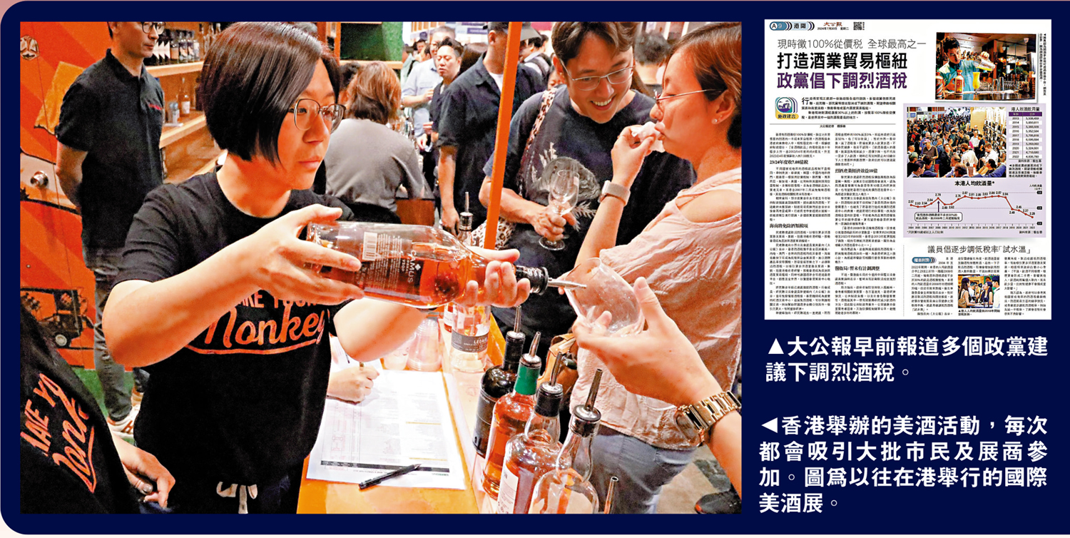 行政長官李家超現正就新一份施政報告進行諮詢,早前多個政黨,包括民建聯、經民聯、新民黨等提出取消或下調烈酒稅,期望帶動相關貿易和商業活動,推動香港成區內酒業貿易樞紐。
