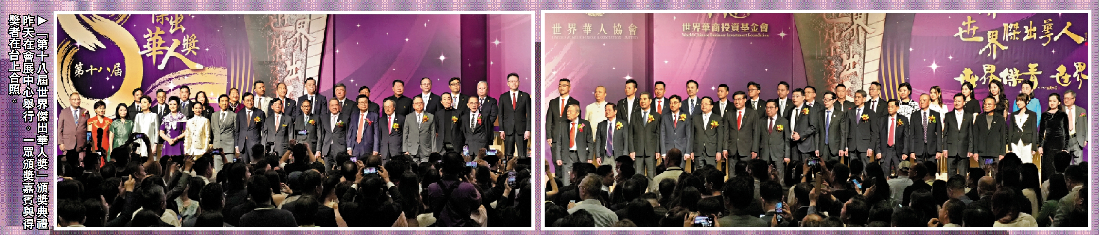 頒獎禮由世界華商投資基金會主辦,世界華人協會合辦,分別頒出「第十八屆世界傑出華人獎」、「第四屆世界傑出華人青年企業家」、「第八屆世界傑出藝術家大獎」及「世界傑青·世界傑出華人青年獎」。