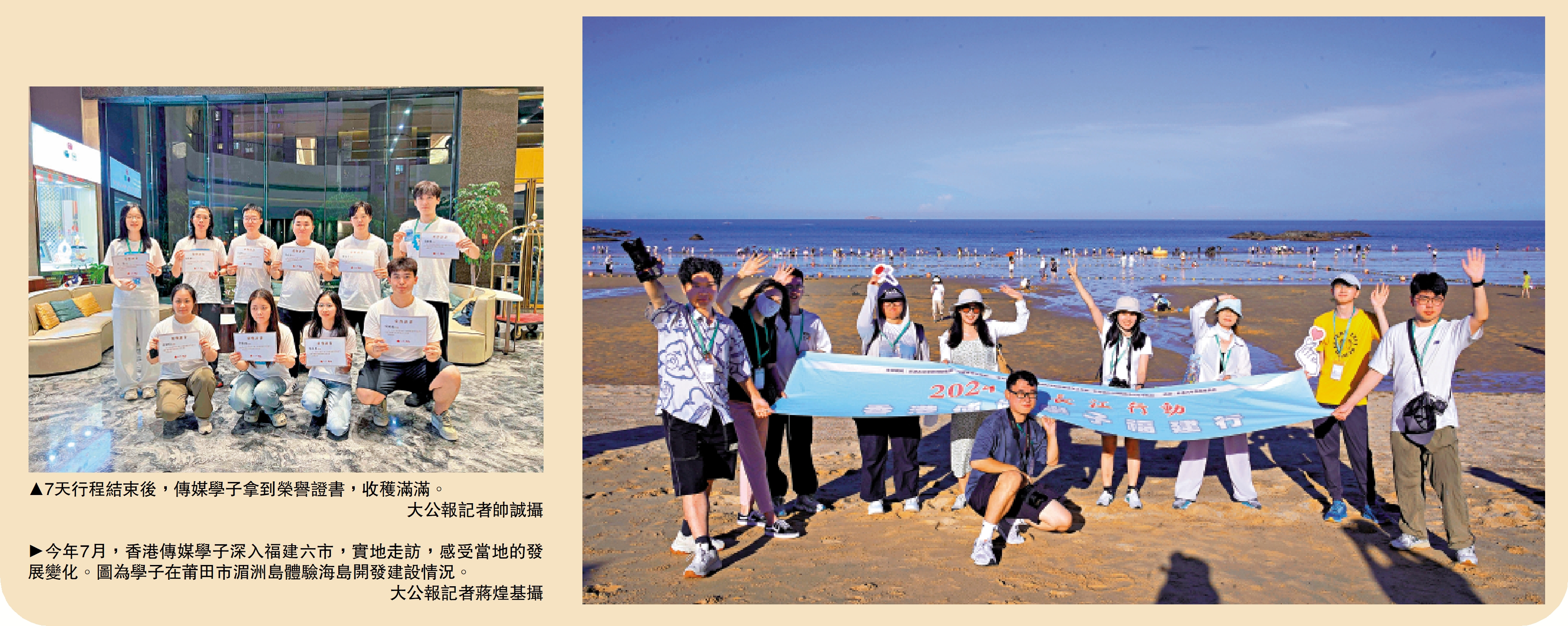 萬物繁盛的7月,來自香港7所高校的22名傳媒學子兵分南北兩線,沿着習近平總書記在福建工作、生活、奮鬥的足跡,深入福州、寧德、平潭、莆田、泉州、廈門等地採訪,實地領略當地科技創新實力、對外開放活力、閩台融合發展新路、社會治理創新以及歷史文化保護傳承等,從人民領袖的改革足跡、奮鬥歷程中感悟思想偉力、汲取真理力量,在行走中感受八閩大地的奮進脈搏。福建是中國式現代化地方實踐的縮影。香港傳媒學子們用年輕人的視角和獨特方式,向港人和海外受眾講述習近平總書記描繪的「新福建宏偉藍圖」正在變為美好現實的故事。\大公報記者 蔣煌基、蘇榕蓉