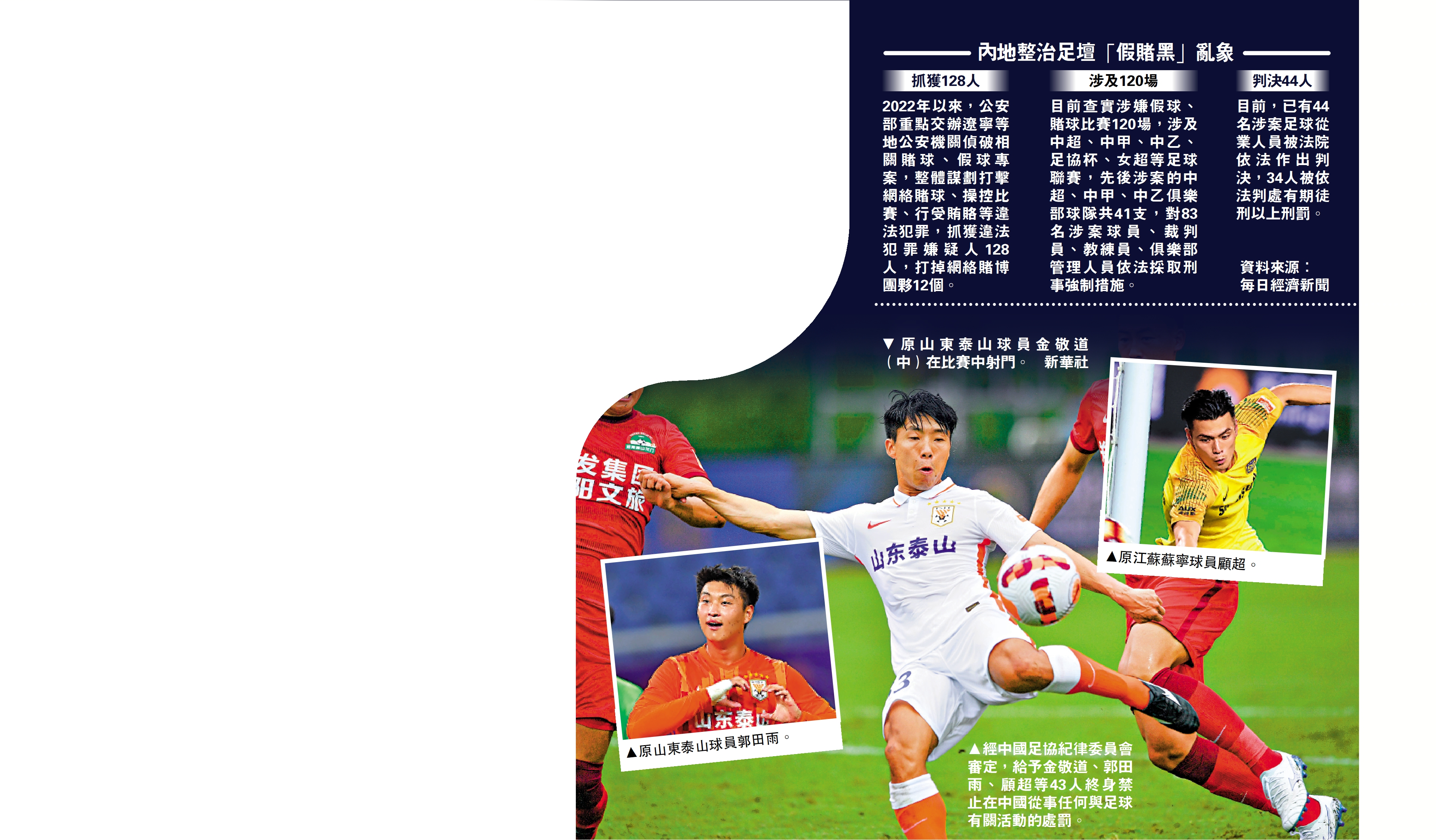 【大公報訊】據新華社報道:公安部治安管理局負責人介紹了公安機關依法嚴肅查處足球領域賭球、假球等違法犯罪情況。2022年以來,公安部重點交辦遼寧等地公安機關偵破相關賭球、假球專案,整體謀劃打擊網絡賭球、操控比賽、行受賄賂等違法犯罪,抓獲違法犯罪嫌疑人128人,打掉網絡賭博團夥12個,查實涉嫌賭球、假球比賽120場,對83名涉案球員、裁判員、教練員、俱樂部管理人員依法採取刑事強制措施。目前,已有44名涉案足球從業人員被法院依法作出判決,34人被依法判處有期徒刑以上刑罰。