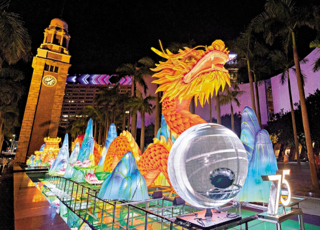 【大公報訊】康樂及文化事務署昨日起至十月六日,在香港文化中心露天廣場的水池展出綵燈《月上龍宮》,為甲辰年中秋綵燈會揭開序幕。綵燈由本地多媒體藝術家蘇暐朝創作,以龍為設計主體,將四川省自貢市的傳統花燈紮作工藝與多媒體藝術結合。《月上龍宮》的亮燈時間為每日下午六時三十分至晚上十一時,中秋節當晚則延長至凌晨十二時。