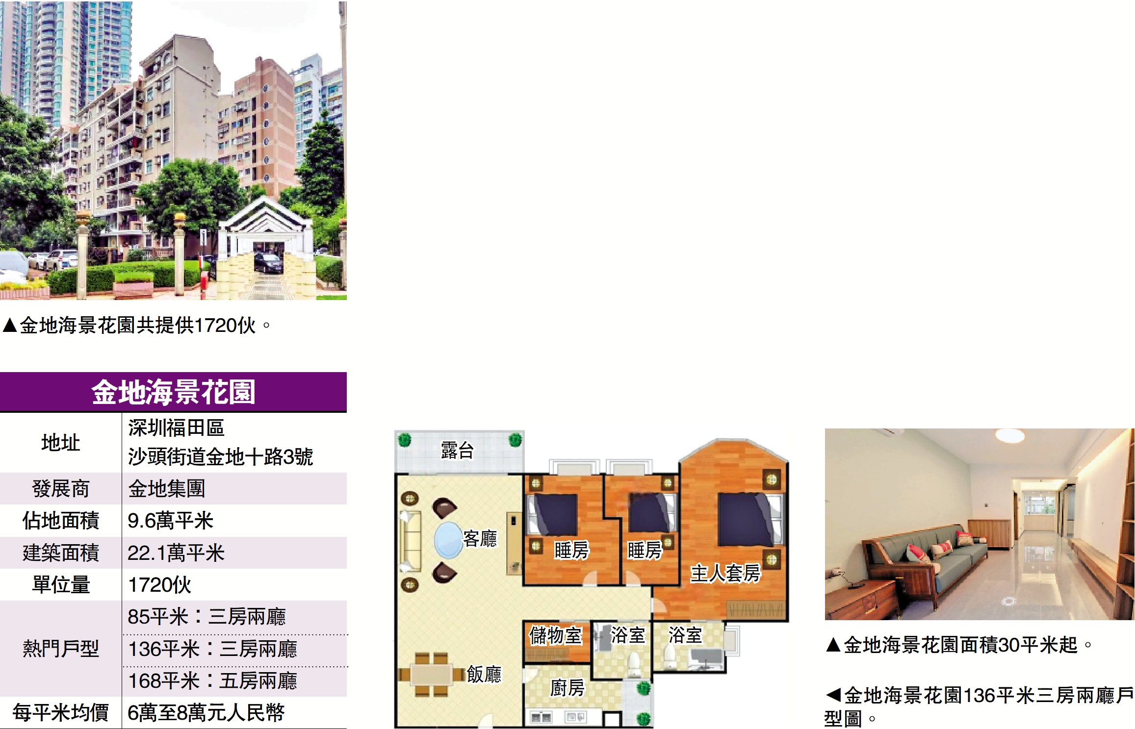 目前,項目二手放盤每平米均價6萬至8萬元人民幣。片區置業經理認為,隨着深圳城市發展的不斷推進和周邊配套設施的日益完善,金地海景花園的樓價有望保持穩定。