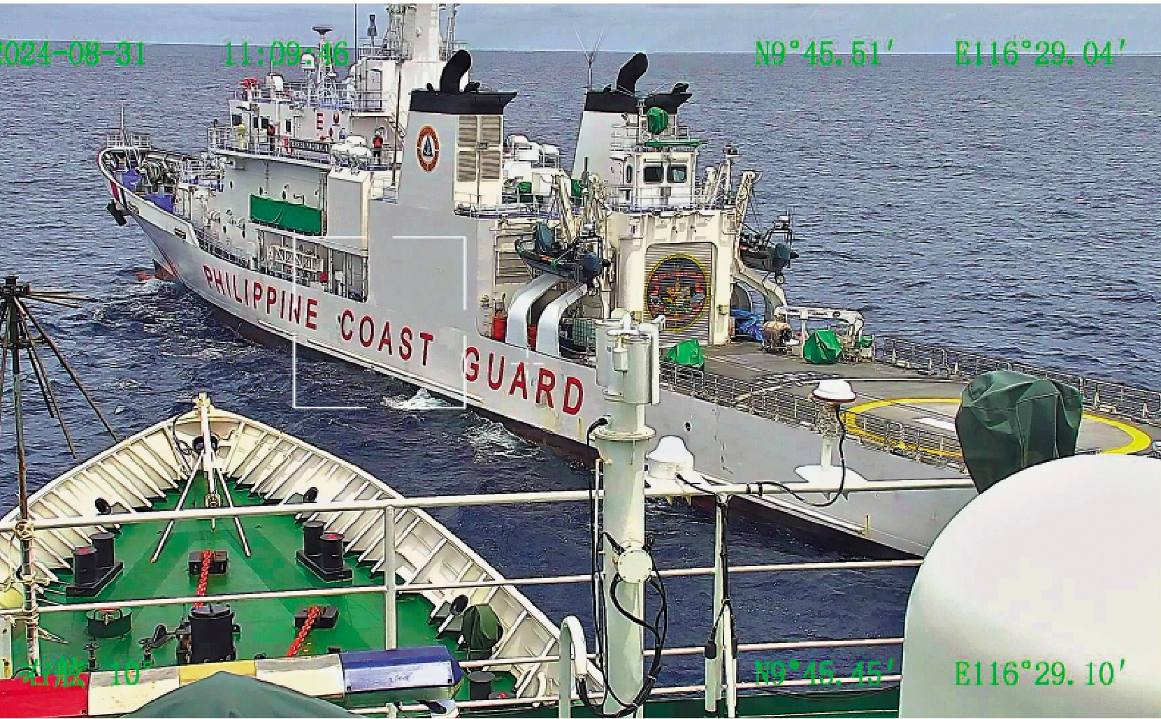 當日12時06分,菲9701號船以不專業、危險方式故意衝撞中方正常維權執法的5205艦,導致發生擦碰,責任完全在菲方。菲律賓海岸警衛隊表示,海警9701號船多次試圖補給遭到中方攔截驅趕,未能成功,上月通過直升機成功空投少量物資,未知是否足夠艦上人員維持生活。