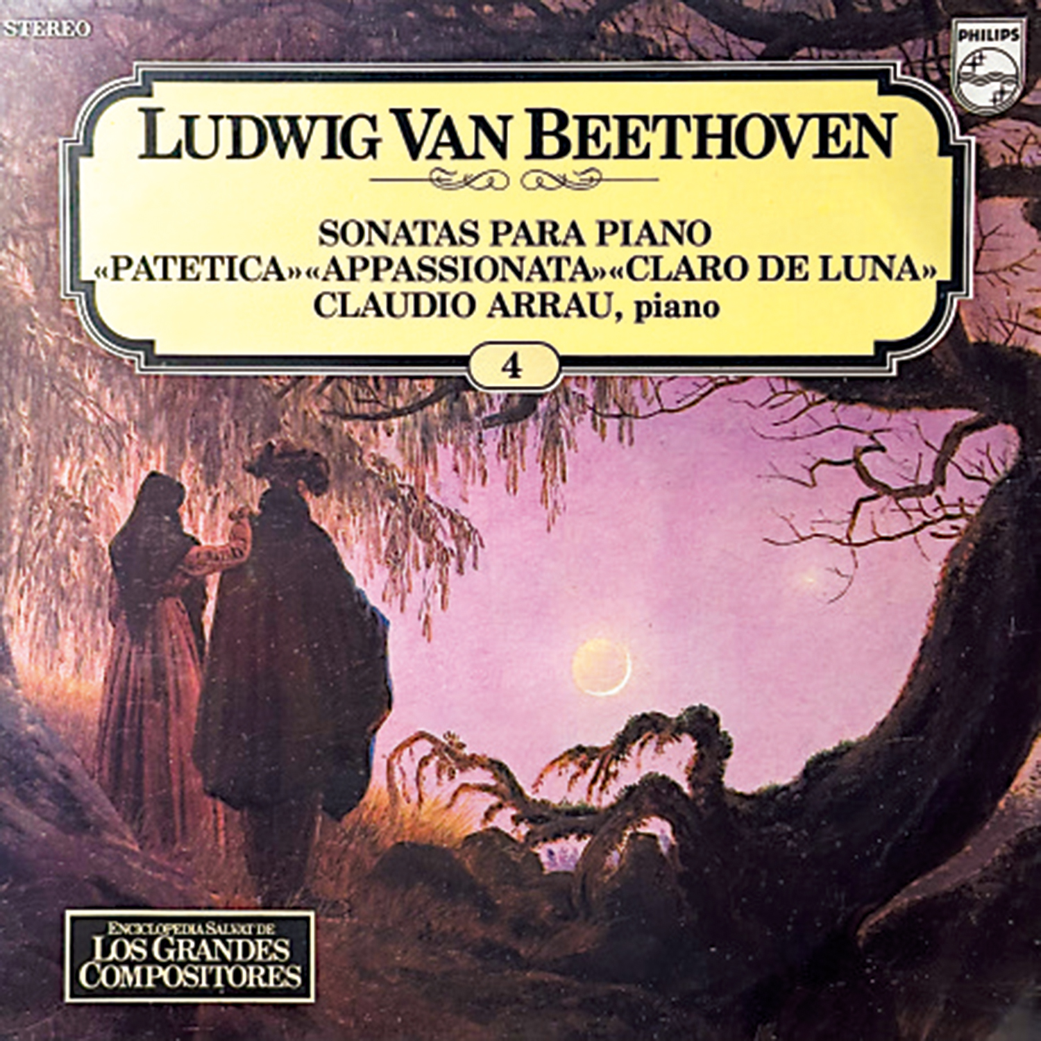 又至一年中秋佳節。無論是在西方古典音樂還是經典名畫中,取材月色的作品均層出不窮。本周應中秋節「花好月圓人團圓」的景,分享一張和月色有關的唱片。專輯是飛利浦唱片公司於一九八一年灌錄並發行的西班牙版貝多芬奏鳴曲選輯。收錄了「樂聖」經典的《第八號「悲愴」奏鳴曲》、《第二十三號「熱情」奏鳴曲》和《第十四號「月光」奏鳴曲》,由二十世紀智利鋼琴巨匠克勞迪奧·阿勞獨奏演繹。唱片封套同樣挑選了一幅關於月光的名作,出自十九世紀德國浪漫主義風景畫家卡斯帕·大衛·弗雷德里希之手的《賞月的男女》局部。