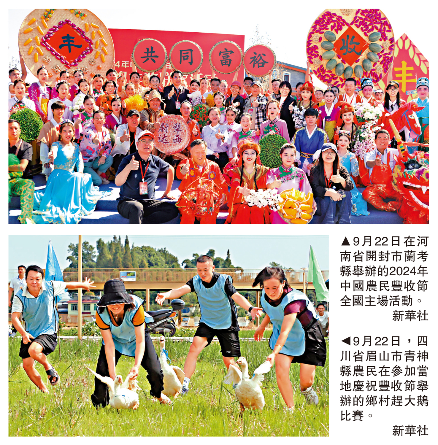 從2018年開始,內地將每年的秋分之日設為「中國農民豐收節」,今年9月22日迎來第七個「中國農民豐收節」。當日上午,「中國農民豐收節」主會場活動在河南省開封市蘭考縣舉行。活動由致敬豐收、致敬農民、致敬農耕3個板塊組成,每個板塊都精心設計了豐富多彩的活動內容。今年的豐收節主題是「學用『千萬工程』禮讚豐收中國」,各地舉辦了一系列特色活動。\央視新聞