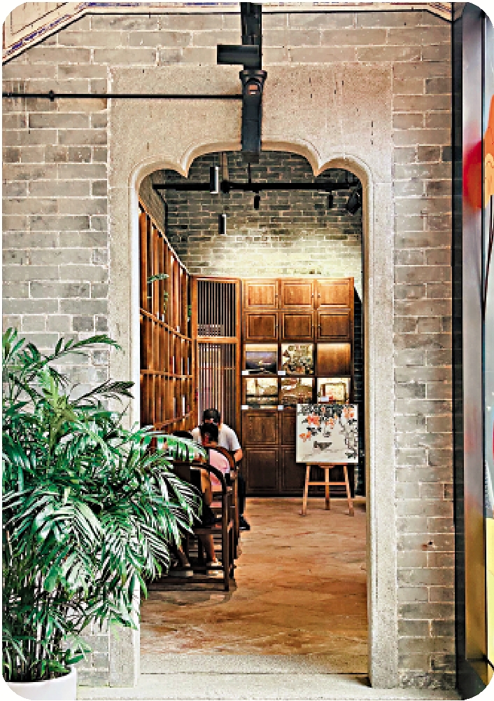 步入書房,頓覺爽涼。幾進幾出的院落活化之後,成為社區圖書館,服務當地居民,也為遠道而來的遊客提供一處落腳暫歇之處。此處圖書館屬於「百島書房」的一處分支,是珠海市政府打造的閱讀文化項目,希望滿足不同年齡的讀者借閱圖書的需求,亦可舉辦不同類型的文化藝術活動,讓閱讀這件事成為觸手可及的日常。