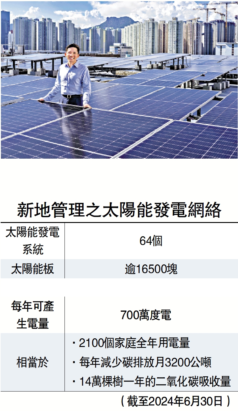 為配合本港2050年實現碳中和目標,新地2019年開始推動太陽能發電網絡,至今已提前實現部分十年減排目標,計劃將商用物業溫室氣體減排目標由25%提升至35%。
