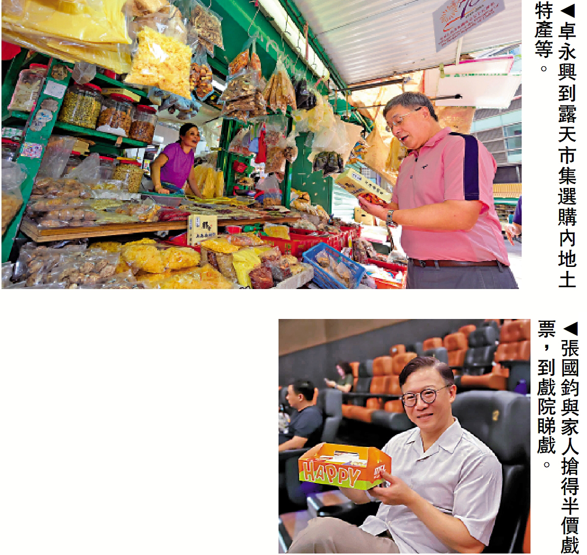 歡度國慶普惠全城,政務司副司長卓永興昨日到灣仔多間商舖,享用國慶的飲食及購物優惠,他喜見很多市民十分支持政府牽頭聯繫社會各界為國慶推出的多樣特別優惠和活動。卓永興先到灣仔交加街的露天市集選購內地土特產、衣物、零食,之後到一家茶室,點了多種美食如蝦多士、熱狗、雪糕涼粉等,享用全日全單75折的優惠,大快朵頤。最後,他又到鵝頸街市熟食中心,以75折價錢,買了多款燒味和咖喱羊腩。他又與市集商販和食客等交談,並呼籲市民享用各種優惠及參與豐富的慶祝活動,親身感受國慶的歡欣喜悅。