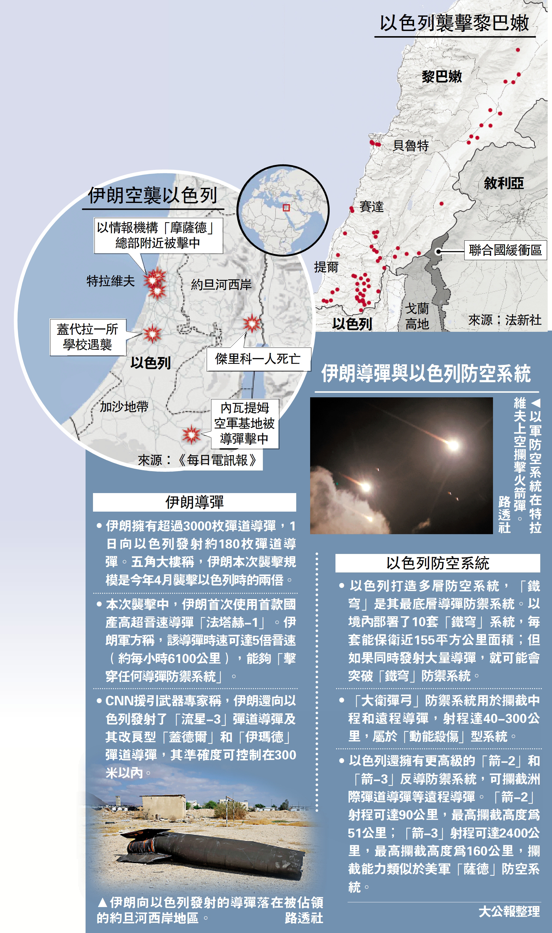 •伊朗擁有超過3000枚彈道導彈,1日向以色列發射約180枚彈道導彈。五角大樓稱,伊朗本次襲擊規模是今年4月襲擊以色列時的兩倍。