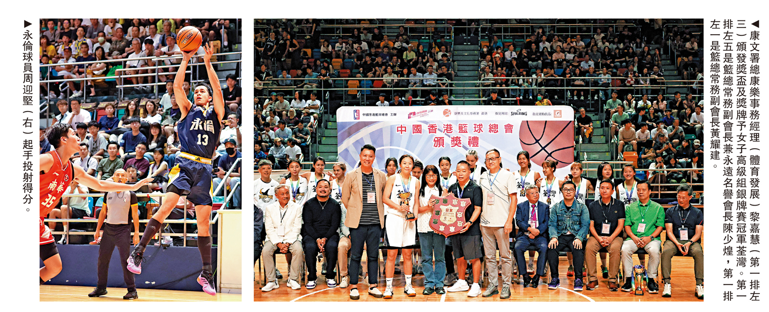 本地籃球昨晚在灣仔伊利沙伯體育館舉行兩場總決賽大戰,焦點放在壓軸上演的男子高級組銀牌賽,由在勝方組晉級的南華對陣於負方組「復活」的永倫,結果大部分時間落後的永倫,憑着球員力拚到底,成功以72:70反勝南華,得以保持最終的爭標機會,將於明晚在修頓室內場館與南華合演爭冠戰。\大公報記者 朱家立(文、圖)