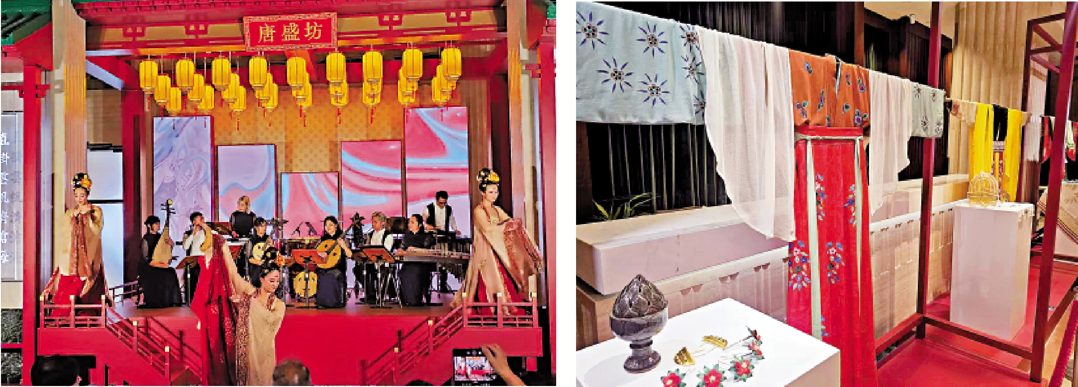 【大公報訊】記者徐小惠報道:由香港天籟敦煌樂團聯乘香港舞蹈團以現代音樂配合當代舞蹈呈現的「《綻放大唐》唐朝生活展覽特別音樂會」近日舉行。活動結合展覽與演出,重新詮釋以唐代生活、敦煌文化和藝術為靈感的原創曲目,舞者們配合樂曲輕歌曼舞,引領觀眾一起夢回唐朝處處欣欣向榮、載歌載舞的盛世場景。