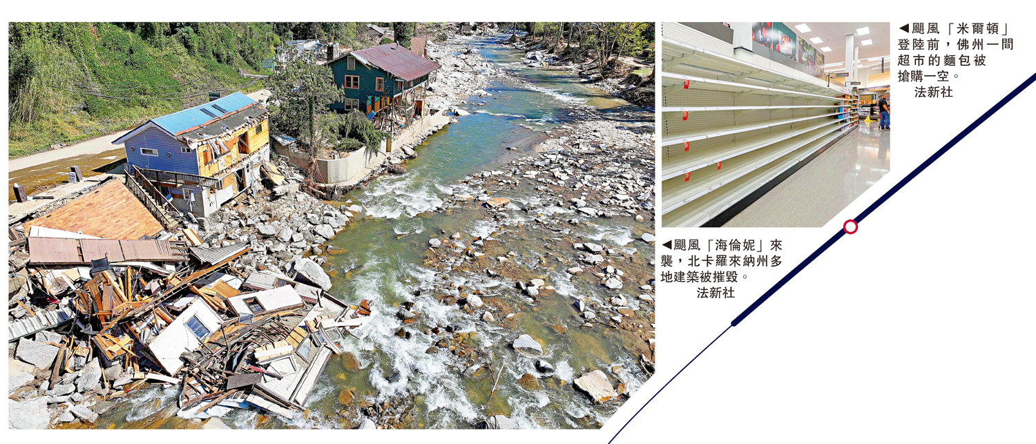 特朗普陣營將颶風「海倫妮」和「米爾頓」颶風的雙重災難變成了「政治足球」,大肆傳播毫無根據的陰謀論,指控拜登政府「故意不幫助共和黨執政的災區」。當地時間9日,特朗普在其社媒平台上說,「北卡州西部甚至是全州,都因為哈里斯/拜登的無能而管理不善。」