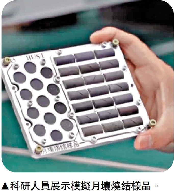 A:「月壤磚」採用真空熱壓燒結。先把模擬月壤稱重,將鬆散的月壤放入模具內壓製,然後將壓製成型、帶有模擬月壤的模具放到真空熱壓爐中,最後採用電磁感應燒結爐可以在十分鐘左右將溫度加熱至1000℃以上,「月壤磚」就燒製完成了。