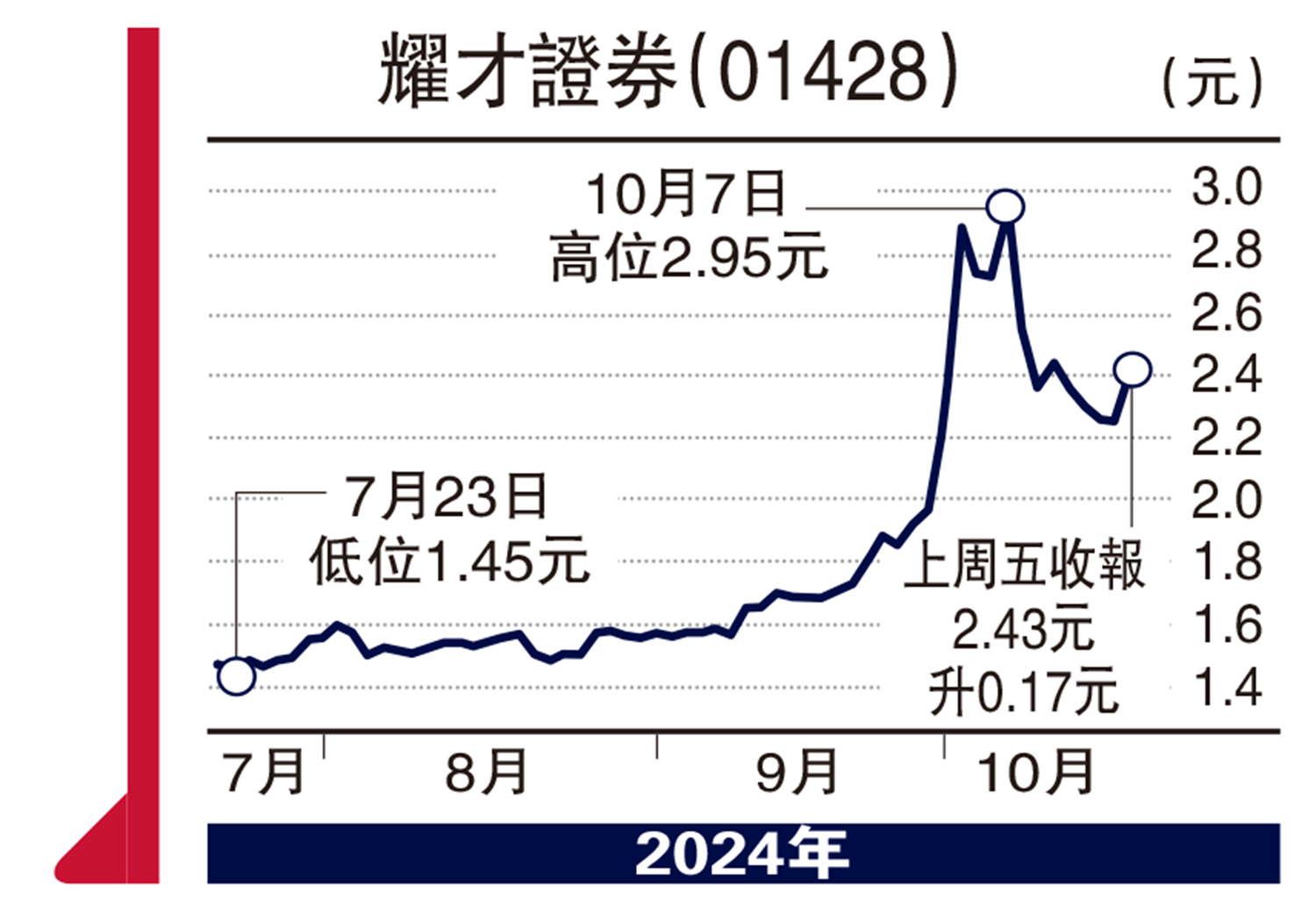 看好的理由就講這麼多。現在要講講有什麼股份可以投資。「三個條件」要具備,即高息、盈利增長好、前景佳。第一隻是本地券商龍頭耀才證券(01428),上周五收2.43元,升7.5%,表面看似升很多,其實此股最近跌了27%,遠遠未收復失地。現價的耀才,周息率13.58厘,非常吸引。有問:這個高息能維持否?我認為可以,還有機會再加派股息,因為現在港股的成交額比去年多了一倍有餘,耀才有57萬個客戶,上半年即使在成交額不大的情況下,仍錄得3%增長,那麼下半年幾可肯定增長必勁。內地券商股升到火紅火綠,而周息率則遠低於耀才,在性價比方面,耀才可謂質優價平回報高。此股去年派息0.33元,今年保守估計增派20%,也有0.4元,預期周息率就高達16厘了,對喜歡高息的朋友,乃不錯的投資選擇。