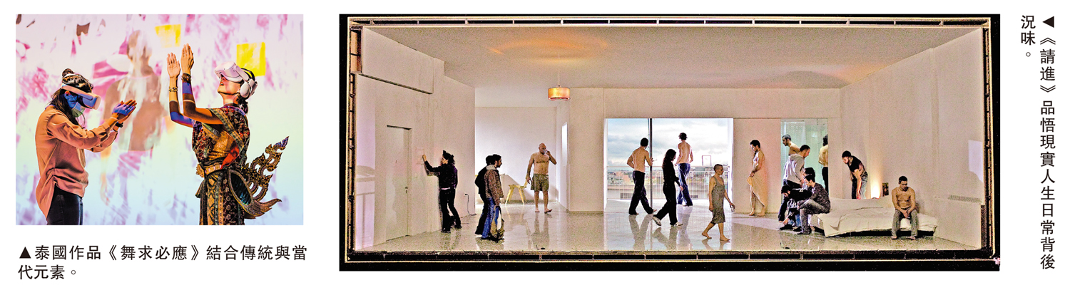 受有400多年歷史的泰國傳統求神儀式Ram kea bon所啟發,泰國新晉編舞家Kornkarn Rungsawang結合傳統舞蹈與現代科技,創作出穿越現實、虛擬與精神世界的互動新作《舞求必應》(11月29至12月1日)。作品透過虛擬實境及擴增實境技術建構了虛擬寺廟,邀請觀眾猶如置身寺廟中向虛擬神明許願;她將為觀眾及虛擬神明充當中介舞者,為傳統舞蹈語彙提供了新的意義,並將生活中傳統祭禮連結當下的文化語境,創造出一個共同想像、渴望和靈性的新體驗。