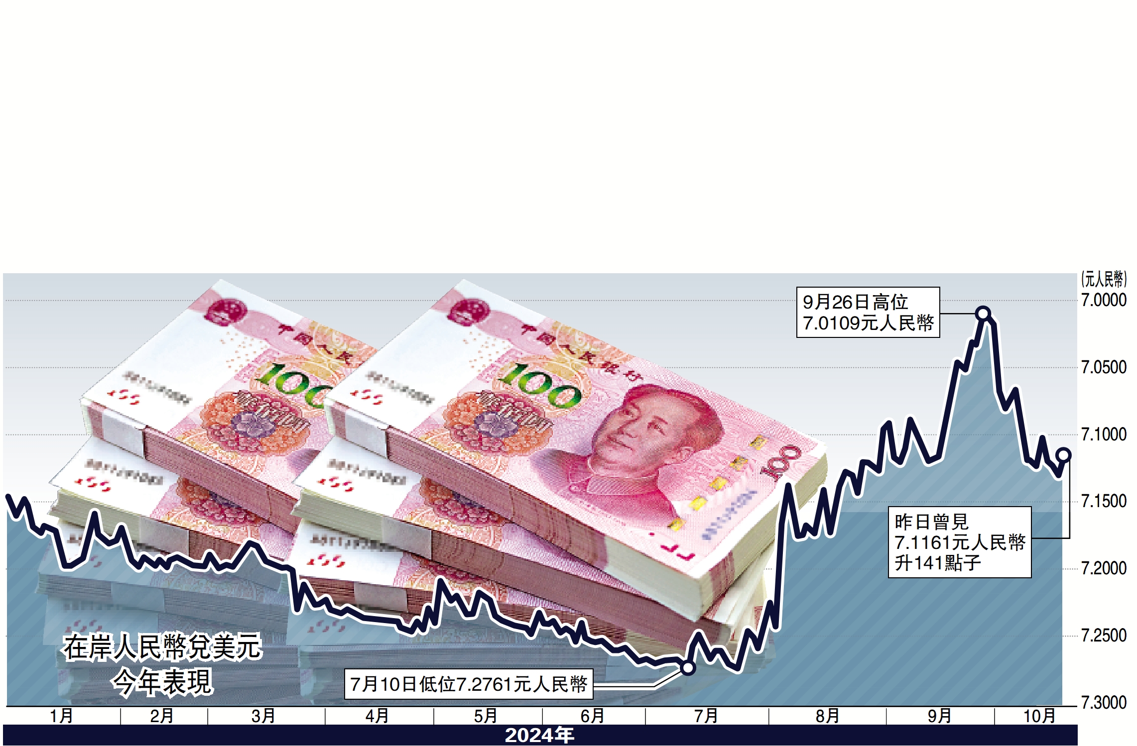 隨着美國大選臨近、美國經濟數據表現反覆的因素擾動,近期在岸人民幣兌美元匯價在7.11至7.12水平雙向波動。