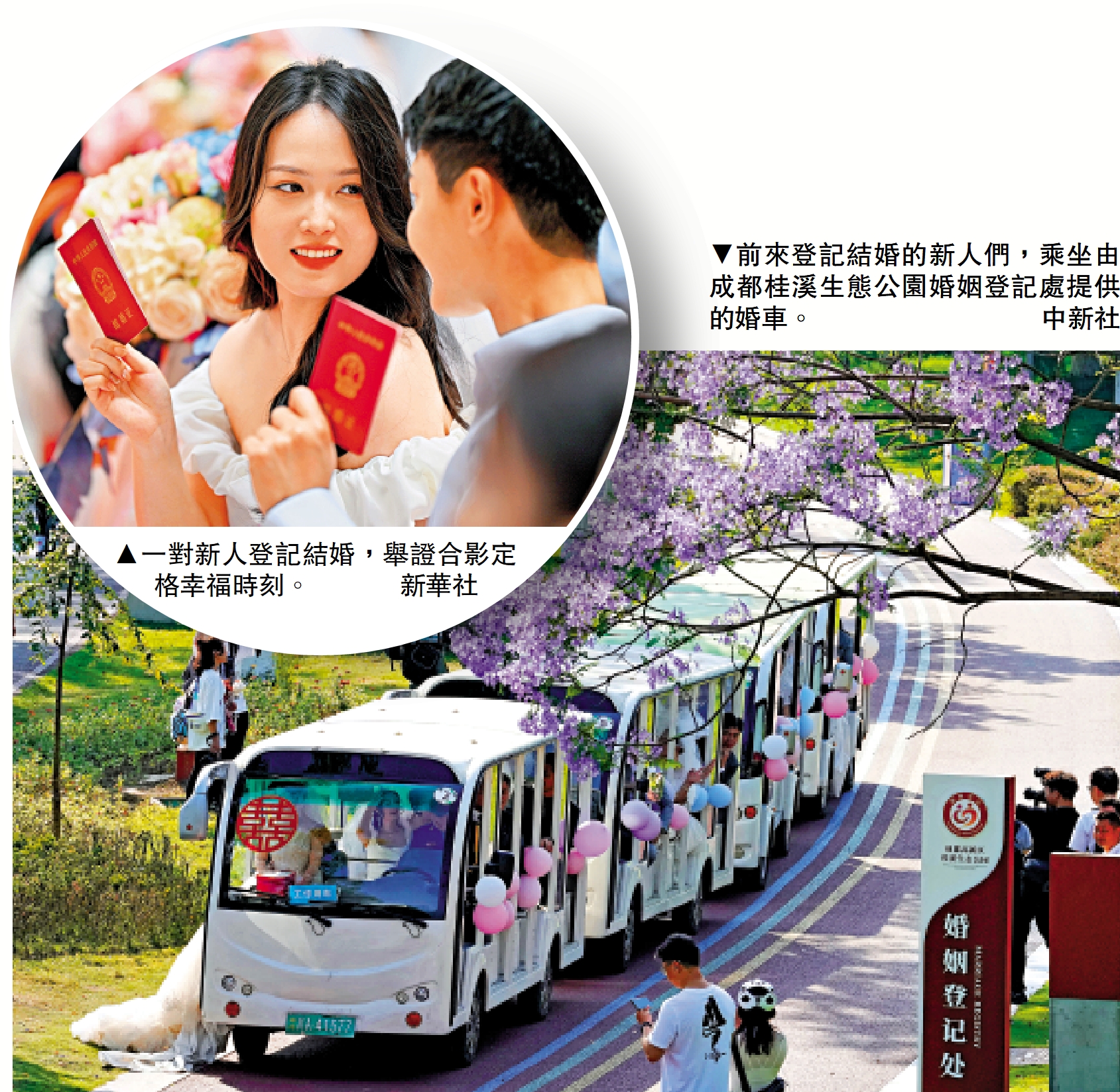 當民政局攜手公園,當愛情的誓言在翠綠的林間、絢爛的花海中回響,一場關於婚姻登記的「浪漫革命」正在悄然上演。10月23日,民政部舉行專題新聞發布會,鼓勵有條件的地區將婚姻登記機關設置在公園等有標誌性意義場所。這一新倡議在網上引發熱議。有人認為,在公園登記結婚是「甜蜜升級」,可以提高年輕人的結婚積極性;也有人持反對意見,認為這是在挑戰傳統婚姻莊重的邊界。在婚登量持續走低,促婚政策頻出的當下,讓這場關於「愛」的創新,究竟是浪漫爆棚的結婚新體驗?還是挑戰傳統的形式主義?\大公報記者 曾萍