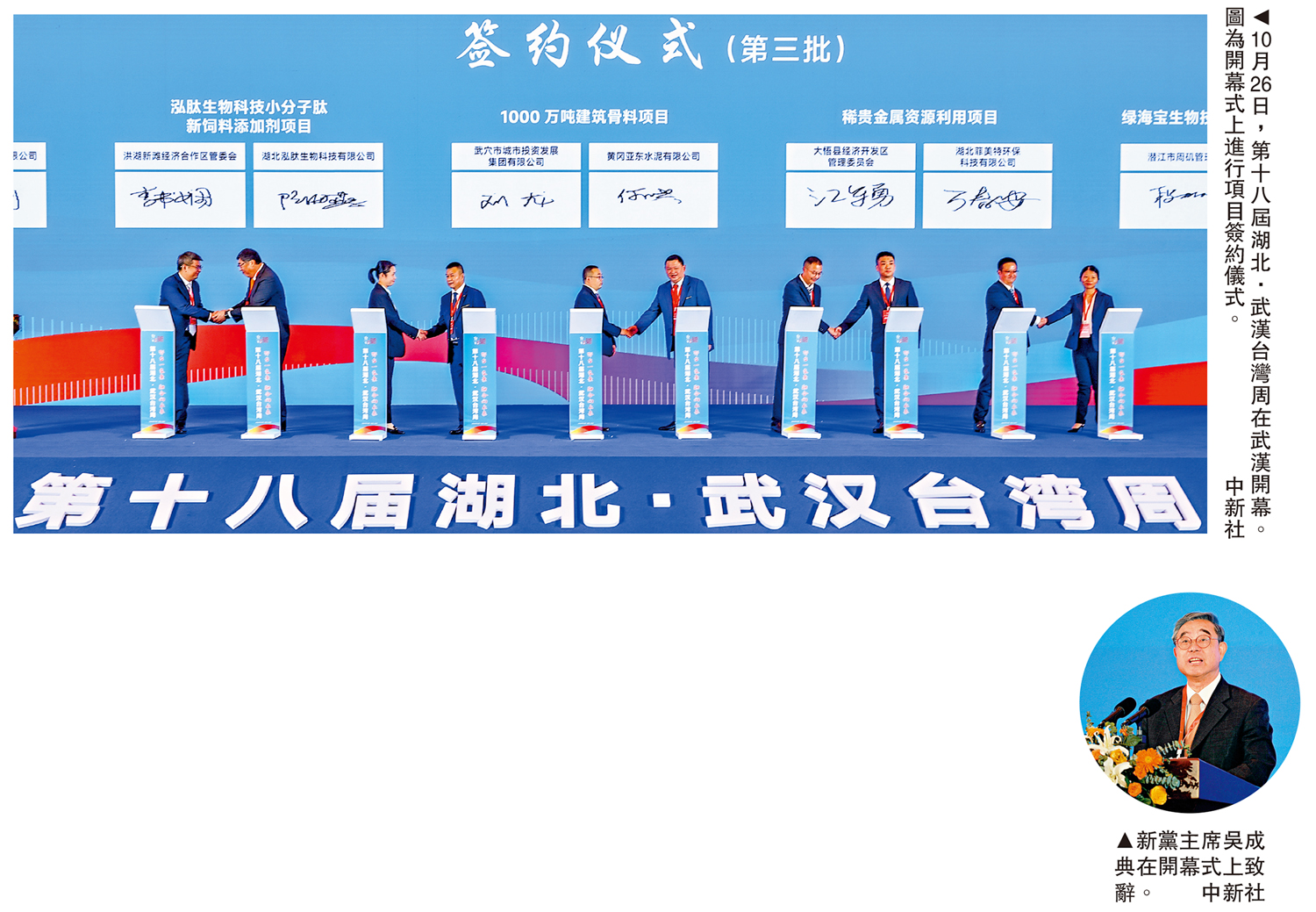 新黨主席吳成典表示,中華民族偉大復興的光輝將超過漢唐盛世,每一個中華兒女的責任很重,對於島內同胞來說,既是榮光、更是機遇與責任。他希望台灣同胞深刻認識「台獨」之害、美國之壞、統一之好,堅決與「台獨」分子劃清界限,堅決反對外來干涉,決不當阻止祖國發展與統一的「棋子」。\大公報記者 歐陽思柔武漢報道