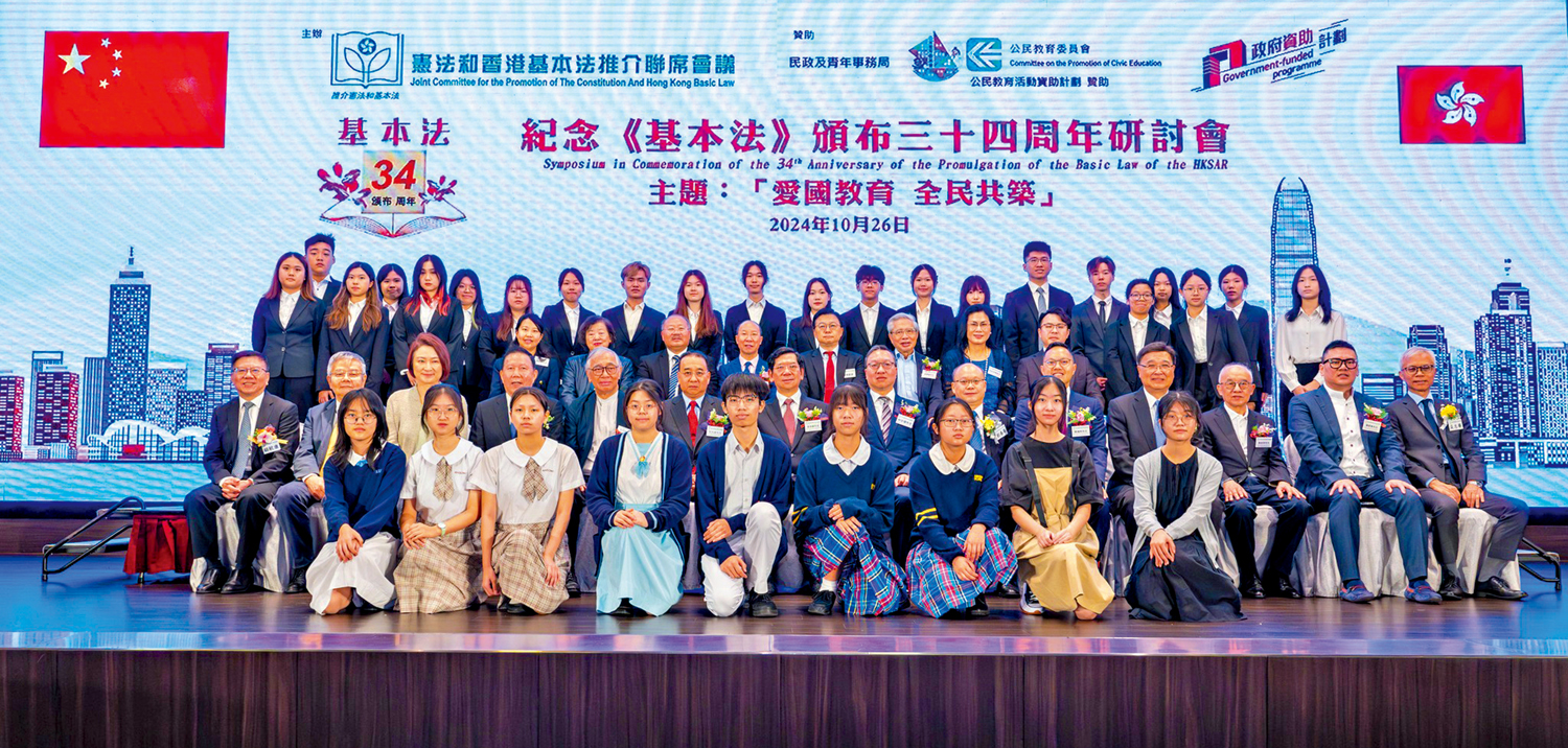【大公報訊】記者龔學鳴報道:「紀念基本法頒布34周年研討會」昨日舉行,研討會以「愛國教育 全民共築」為主題,向社會各界推廣同大眾息息相關的憲法、基本法及國家安全法。律政司司長林定國、中央政府駐港聯絡辦副主任劉光源出席活動。