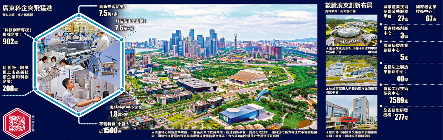 廣東之所以能連續七年蟬聯區域創新綜合能力全國榜首,並孕育出華為、騰訊、比亞迪、大疆等一批科企巨頭,背後是地方政府敢於擔當、主動作為的真實寫照。他們精心制定產業規劃,出台系列精準扶持政策,搭建創新平台,提高行政效率,以「店小二」服務精神,讓科企把精力專注於市場開拓拚殺。這些成功舉措,對於正在大力發展創科的香港,很有參考價值。\大公報記者 盧靜怡、帥誠