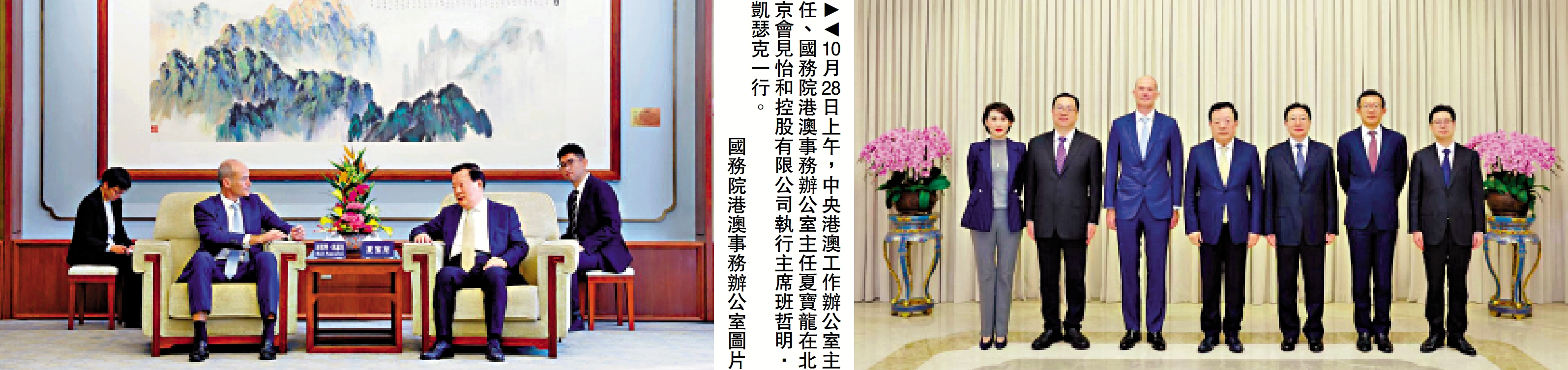 【大公報訊】10月28日上午,中央港澳工作辦公室主任、國務院港澳事務辦公室主任夏寶龍在北京會見怡和控股有限公司執行主席班哲明·凱瑟克一行。