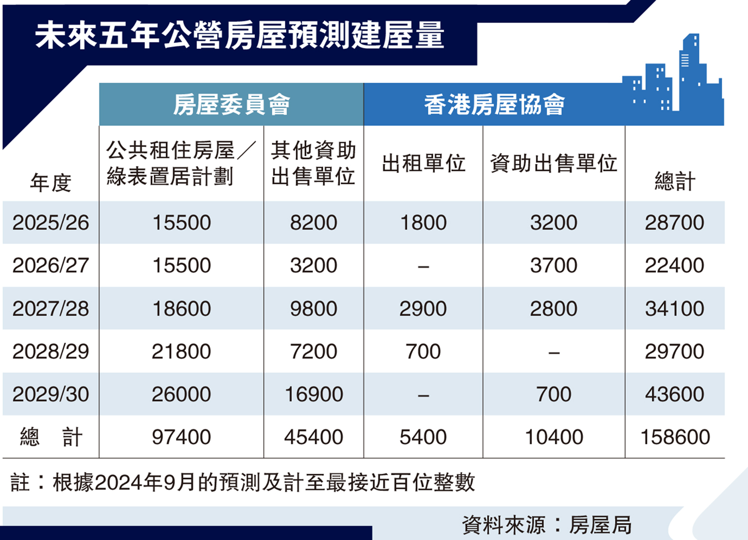 圖:未來五年公營房屋預測建屋量