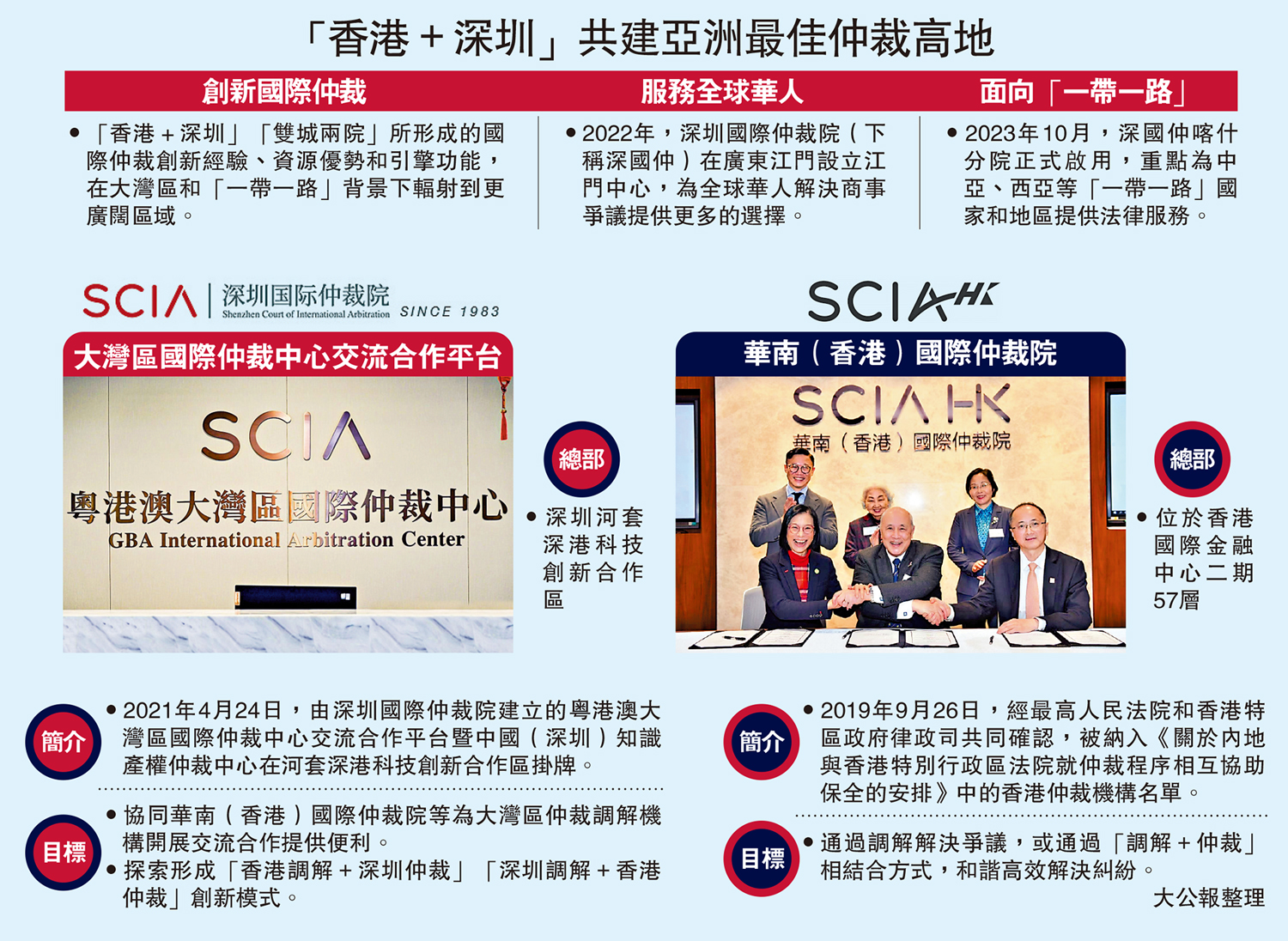 •探索形成「香港調解+深圳仲裁」「深圳調解+香港仲裁」創新模式。