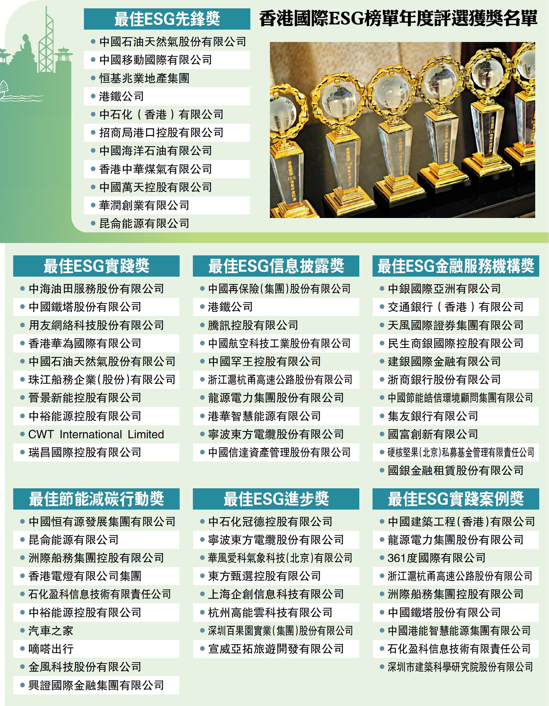 香港國際ESG榜單年度評選獲獎名單