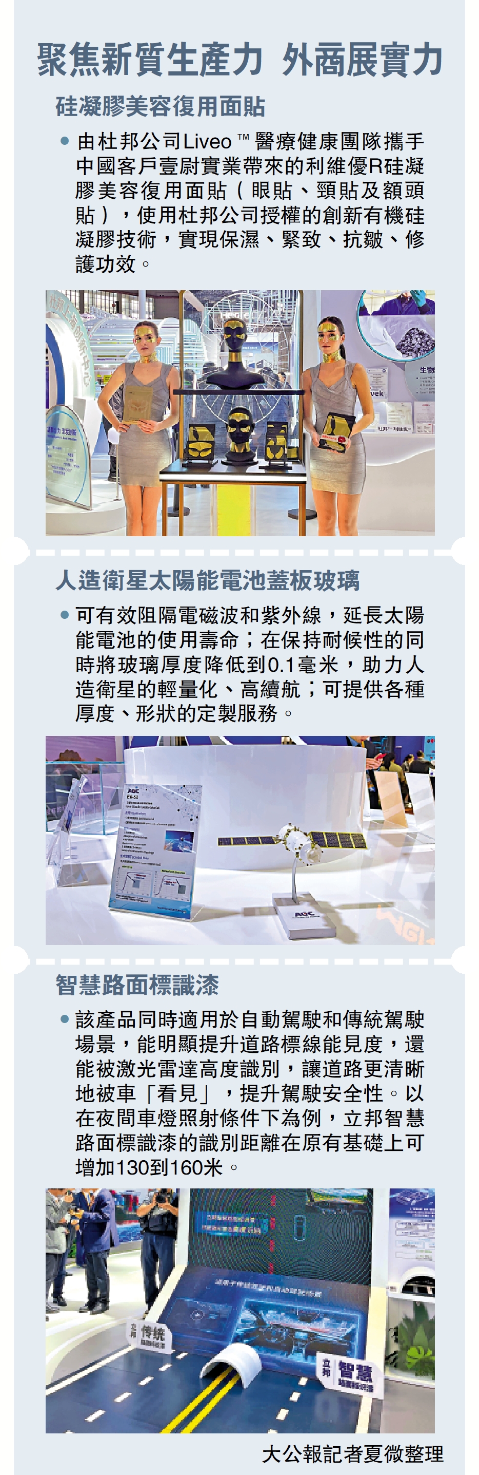 •由杜邦公司Liveo™醫療健康團隊攜手中國客戶壹尉實業帶來的利維優R硅凝膠美容復用面貼(眼貼、頸貼及額頭貼),使用杜邦公司授權的創新有機硅凝膠技術,實現保濕、緊致、抗皺、修護功效。