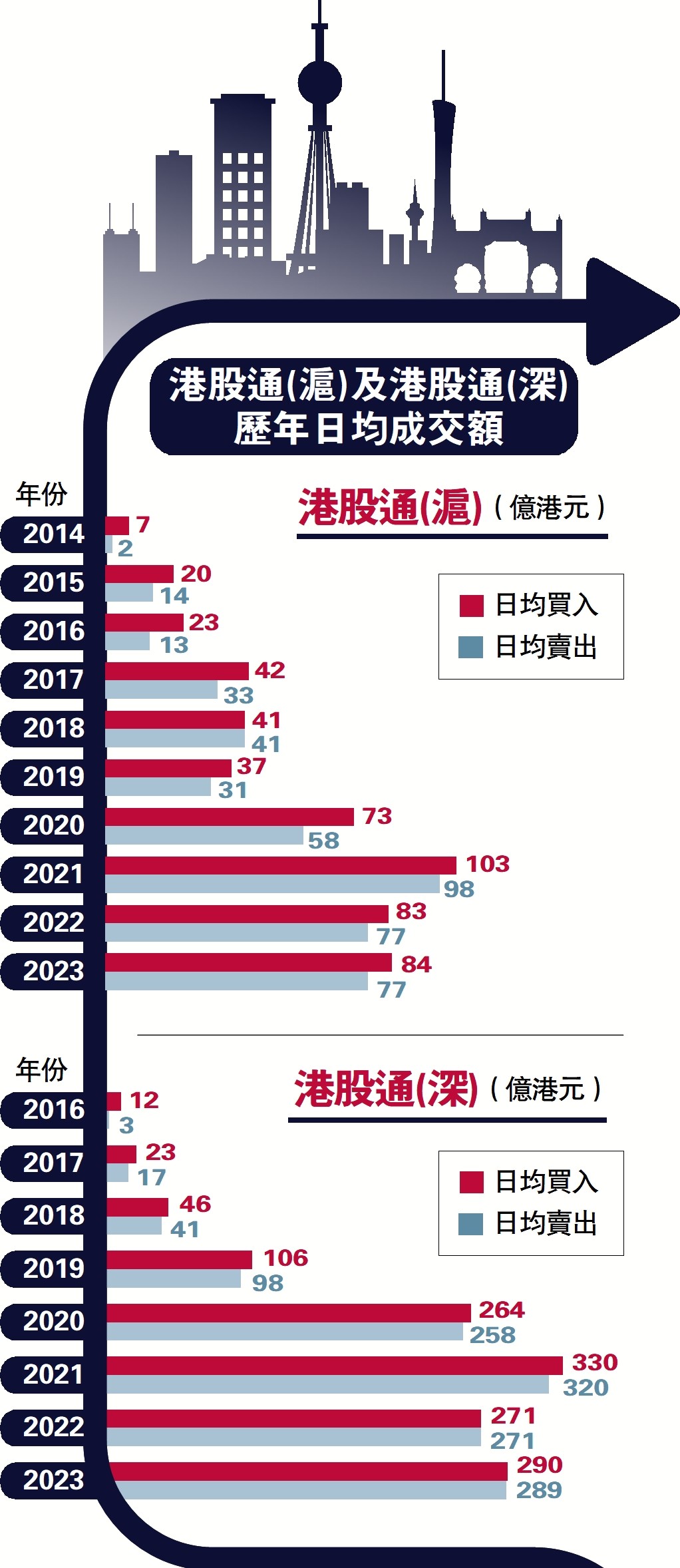 圖:港股通(滬)及港股通(深)歷年日均成交額
