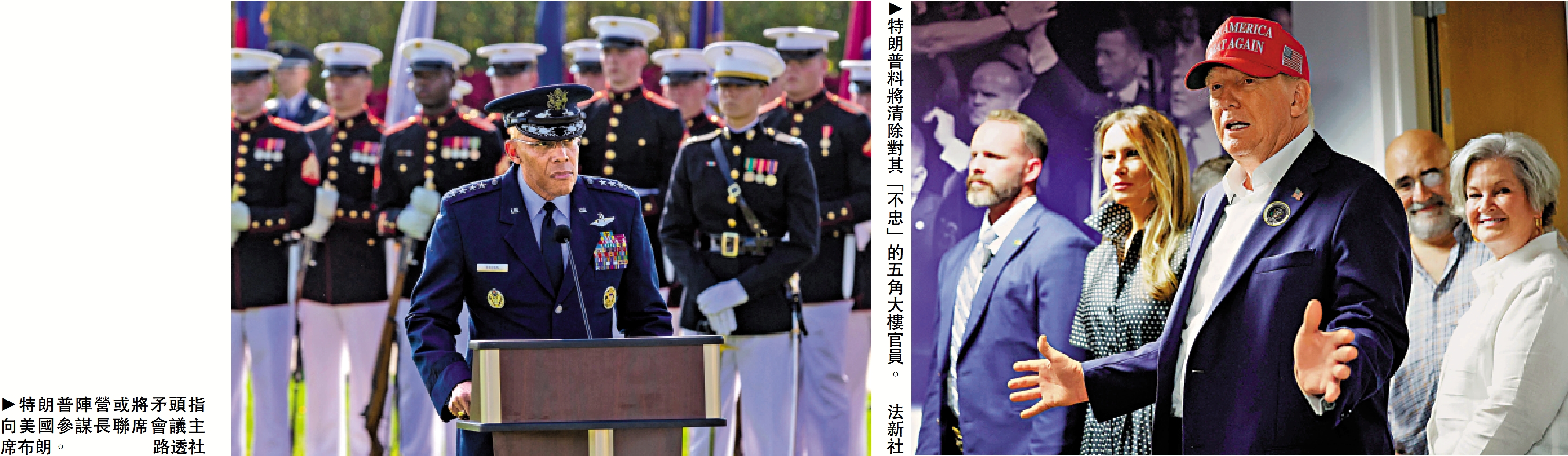 【大公報訊】美國軍方是特朗普「最激烈的批評者」,有些人甚至稱特朗普為法西斯主義者,並宣稱他不適合擔任總統。特朗普亦曾暗示前參謀長聯席會議主席馬克·米利可能因叛國罪被處決。如今特朗普即將重返白宮,路透社援引現任和前任美國官員稱,他在第二個任期內將優先考慮官員的忠誠度,並着手清除「不忠」的軍官和文職人員。
