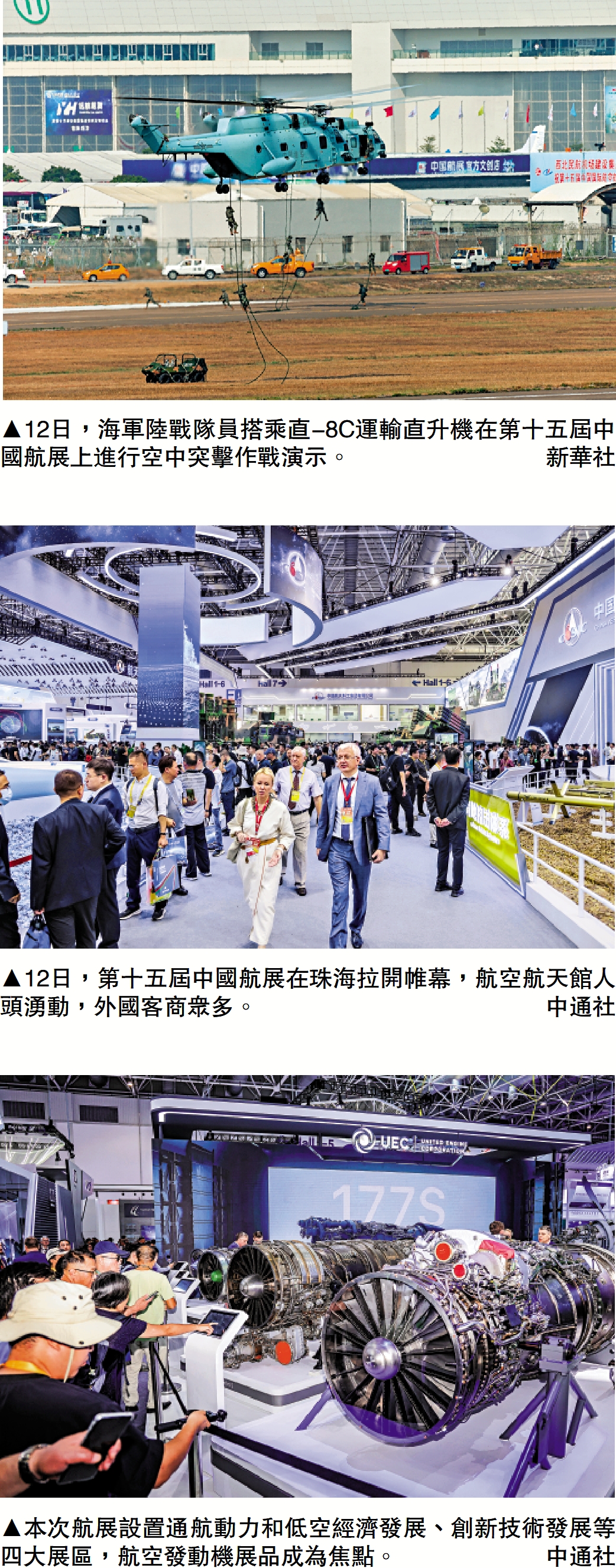 28年來,珠海航展不僅折射世界變局,亦見證中國航空航天由弱到強的發展。隨着珠海航展的舉辦,一批批代表世界先進水平的「高、精、尖」展品集體亮相,全維度涵蓋「陸、海、空、天、電、網」,全方位展示中國航空航天及國防領域的創新成果。中國的航空航天事業,通過這個面向世界的窗口,讓海內外觀眾從飛速發展的中國航展觀察科技前沿,感受大國創新的魅力。\大公報記者 方俊明、李紫妍、黃寶儀、帥誠珠海報道