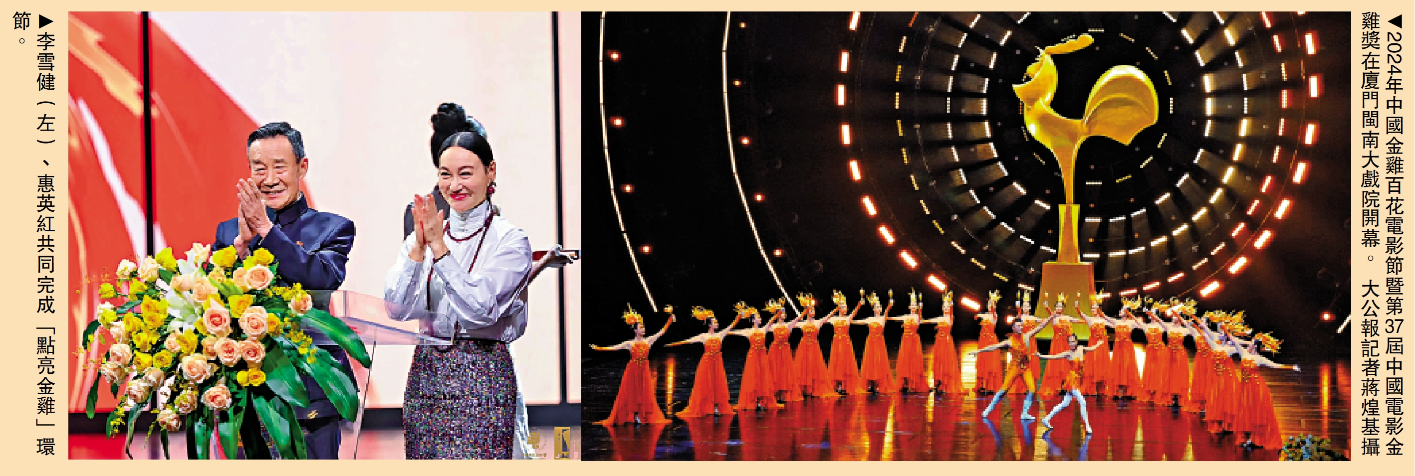 13日晚間,2024年中國金雞百花電影節暨第37屆中國電影金雞獎在廈門閩南大戲院開幕,著名演員李雪健和惠英紅共同完成「點亮金雞」環節。本屆金雞獎最佳男主角提名中,林保怡憑藉《白日之下》中的章劍華一角入圍,與王一博、沈騰等競逐該獎項。\大公報記者 蔣煌基廈門報道