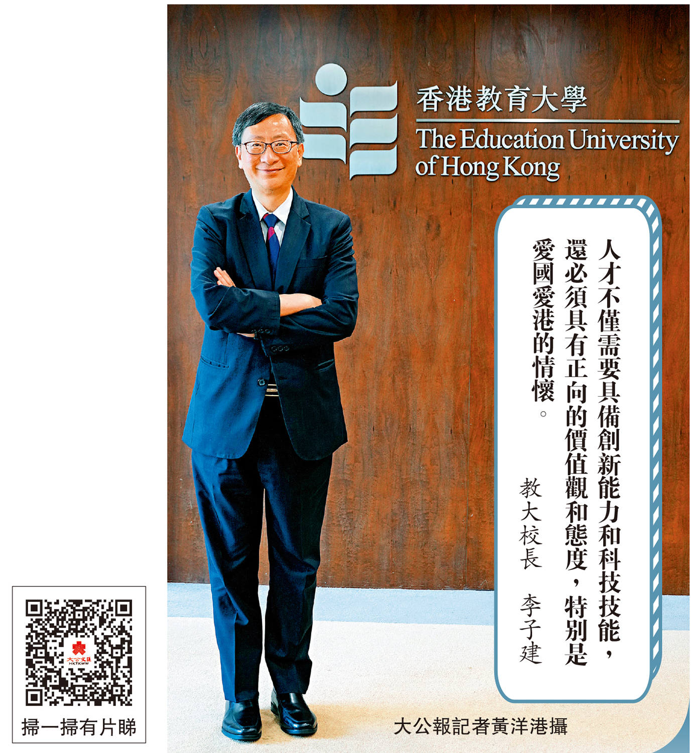 「我們的人才,必須是平衡發展、多元化的人才。我們在教育、教學、研究中引入了AI,是必須的;我們有許多STEAM教育,也是必須的。但是不要忘記,我們也要多學一些中國文化,多擴展一些世界的視野,要培養有愛國心、有愛國情懷、有國家安全意識、守法的綜合人才。」李子建認為,人才不僅需要具備創新能力和科技技能,還必須具有正向的價值觀和態度,特別是愛國愛港的情懷。他亦表示,教大擁有良好的教育傳統,這種全方位的人才培養是教大的優勢。