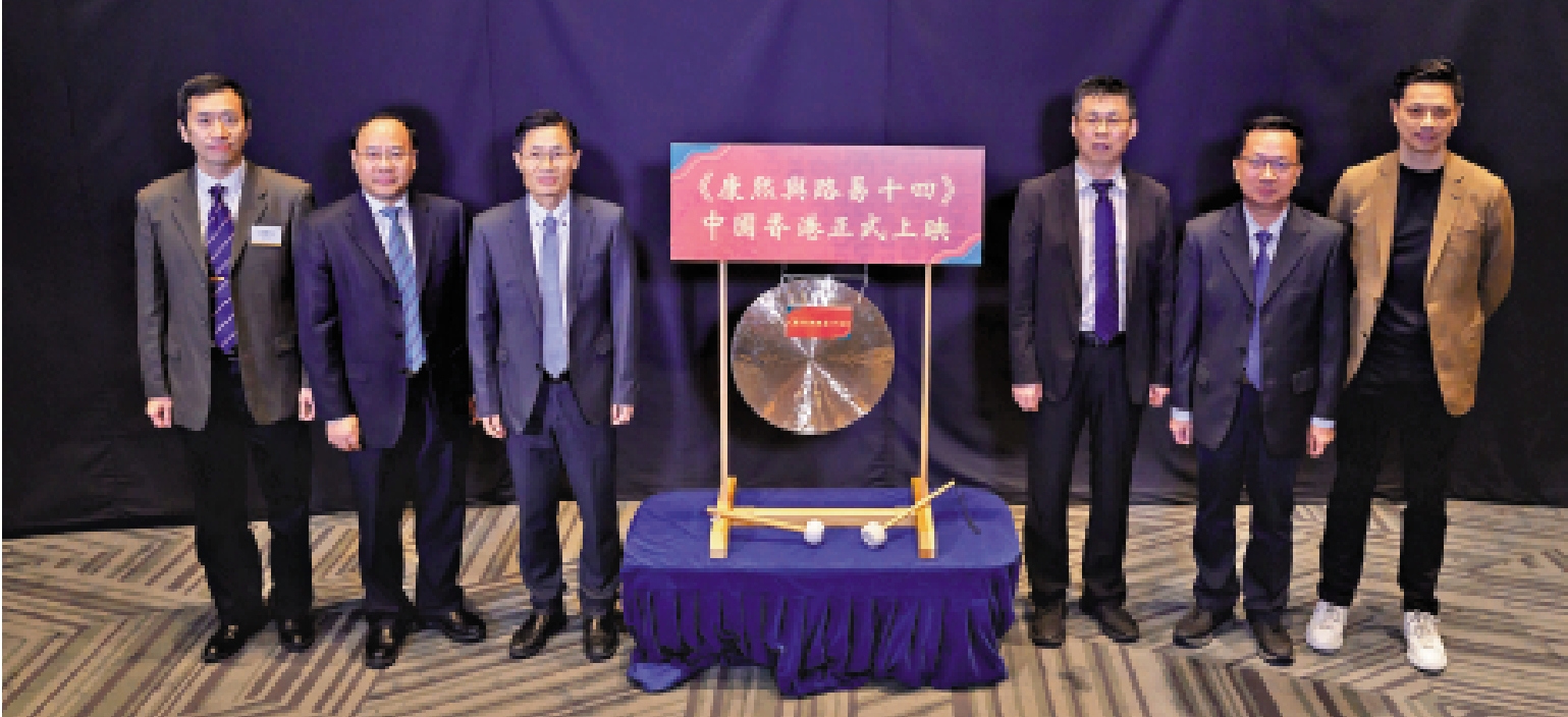 【大公報訊】中央政府駐港聯絡辦宣文部副部長孫兆敏,廣州市委常委、宣傳部部長杜新山,廣州廣播電視台台長陳家成,英皇影院集團總經理袁彥文,廣州市委宣傳部副部長、市文明辦主任鮑煒,廣州廣播電視台副台長黃楚恒等主禮嘉賓出席首映禮,並在全場嘉賓的見證下共同敲響金色銅鑼,祝願《康熙與路易十四》在香港口碑票房雙豐收。