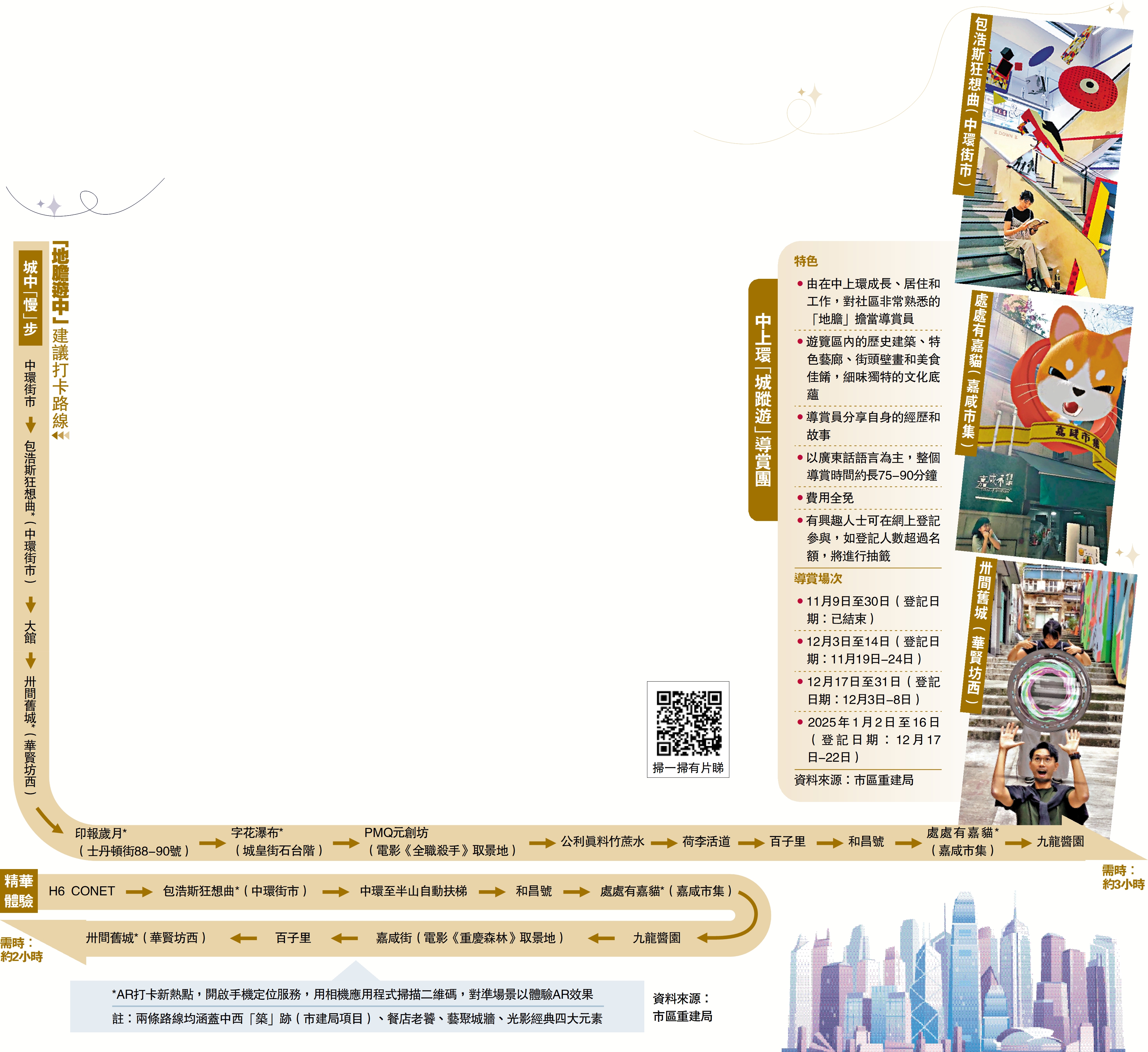 中上環一帶一直是吸引大家CityWalk(城市漫遊)的熱門地點,為讓公眾更深入探索當區魅力,市區重建局培訓60名「地膽」導賞員,透過免費導賞團,帶領遊人體驗四大主題打卡路線。