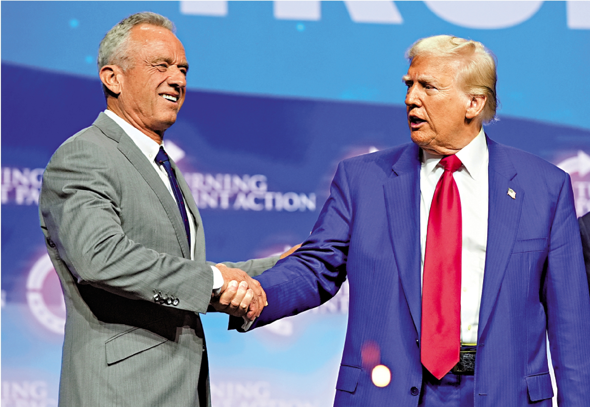 【大公報訊】特朗普14日提名小肯尼迪擔任衞生與公共服務部長。他聲稱:「長期以來,美國人一直被工業食品綜合體和製藥公司壓迫,這些企業在公共衞生問題上進行欺騙、誤導。」小肯尼迪回應說:「我們有了一個幾十年一遇的機會,將科學、醫學、工業和政府領域最傑出的人才聚集在一起,終結慢性病的流行。」
